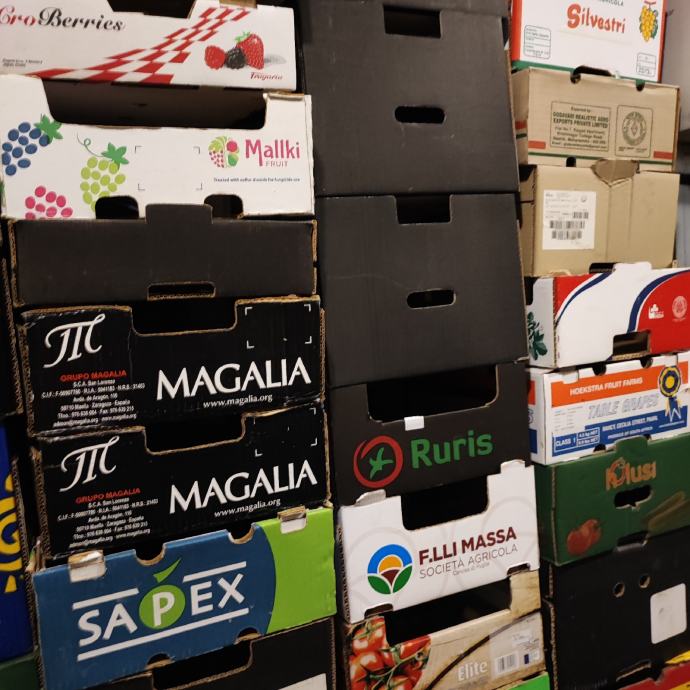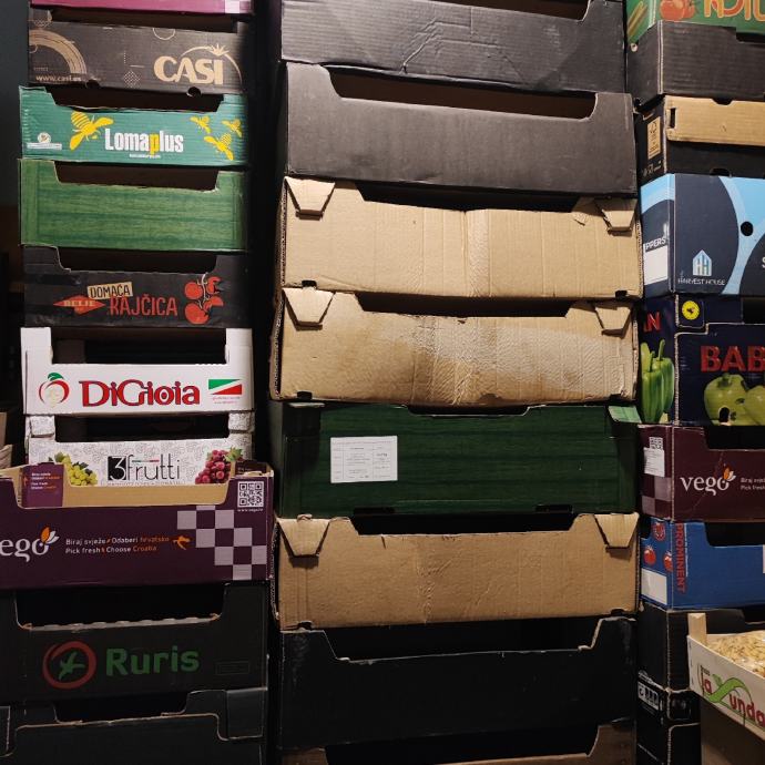Kartonske kutije ,rabljene za voće i povrće.U veće kutije stane do 15 kg u manje od 5 do 10 kg.