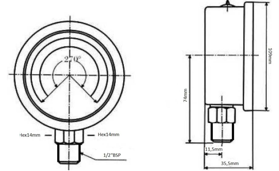 11368 - MANOMETAR DN100 VERTICAL 0-6 BAR 1/2