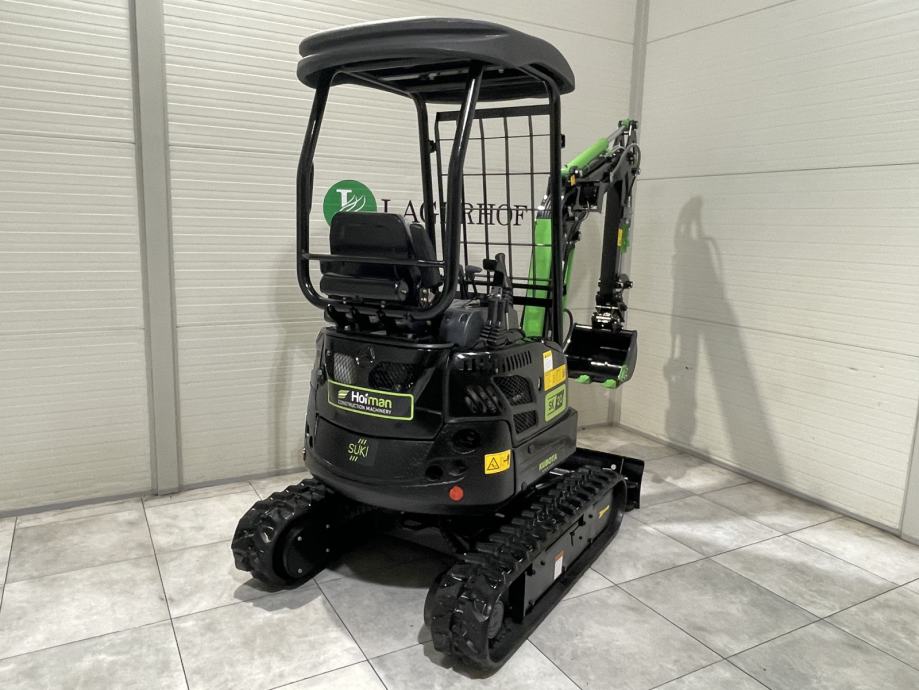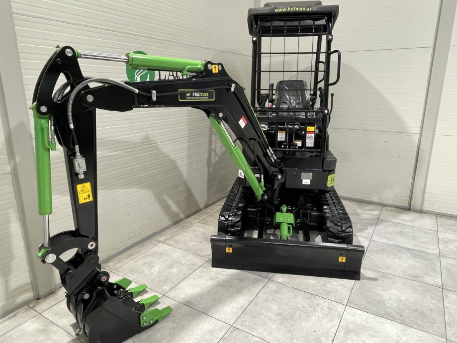 Mini bager HOFMAN SUKI SK20 AIR- Težina: 1.900 kg- Duljina: 3.400 mm- Širina: 990-1.240 mm- Visina: 2.380 mm- Razmak između gusjenica: 910 mm- Duljina gusjenice: 1.235 mm- Širina gusjenice: 230 mm- Visina gusjenice: 360 mm- Motor: KUBOTA D902- Tip: 3 cilindra- Rad motora: četverotaktni- Hlađenje motora: vodeno- Snaga motora: 11.8 kW- Paljenje motora: Električno- Zapremina motora: 898 ccm- Spremnik goriva: 18 L- Spremnik ulja: 15,3 L- Radijus okretanja: 790 mm- Širina šasije: 990-1.240 mm- Razmak od tla: 473 mm- Brzina vožnje: 3,3 km/h- Maksimalna dubina kopanja: 2.150 mm- Maksimalna visina kopanja: 3.275 mm- Maksimalni radijus kopanja: 3.610 mm- Maksimalna visina pražnjenja žlice: 2.310 mm- Minimalni radijus okretanja: 1580 mm- Zapremina žlice: 0,029 m3- Širina žlice: 400 mm- Pomak prednje ruke lijevo/desno- Mehanička brza spojka- Ergonomski joystickDodatne mogućnosti uz nadoplatu:- Žlica 20 cm: 250 € s PDV-om. - Nagibna žlica/blanja/strugalica 80cm: 750 € s PDV-om.- Nagibna žlica/blanja/strugalica 100cm: 850 € s PDV-om.- Riper: 250 € s PDV-om.- Svrdlo 30cm: 1.900 € s PDV-om.- Kliješta: 450 € s PDV-om.- Čekić: 2.200 € s PDV-om.GARANCIJA, SERVIS, REZERVNI DIJELOVIMogućnost DOSTAVE!www.hofman.atZadržavamo pravo promjena i pogrešaka u cijenama i tehničkom opisu te za iste ne preuzimamo odgovornost.