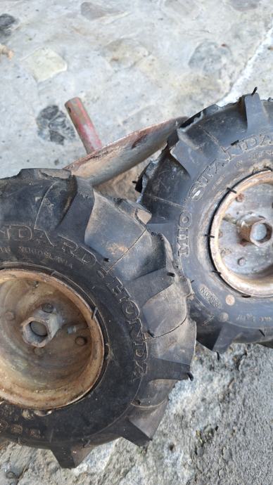 Motor je Tomos dvotaktni, radi na mješavinu benzina i ulja. Originalne Honda gume, dodatni dijelovi (freza, gume, noževi – vidljivo na slici). Motor je u prošlosti redovito servisiran, a zadnje održavanje bilo je početkom 2025. Snaga i ostali tehnički podaci vidljivi su u priručniku pod MIO 350.