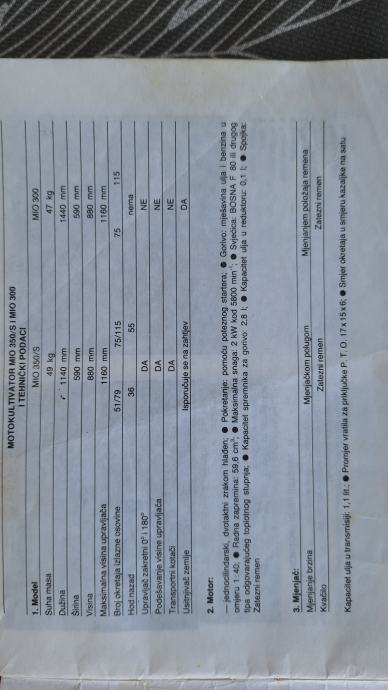 Prodajem ispravan motokultivator MIO 350 Standard – TOMOS motor, kućište Osijek, a ponešto je i Honda. Već je POVIJESNI. Stajao je dulje vrijeme u garaži (cca 15–20 godina; koristio ga je rođak koji je bio strojarski tehničar), ali je i dalje u voznom stanju.