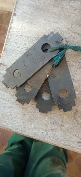 Prodajem noževe za mlin čekičar.Kupljene greškom.Ne znam za koji su mlin.Dimenzije dužina 132 mm širina 40 mm debljina 5 mm rupa 16,3 mm. Imam 4 komada prodajem u kompletu
