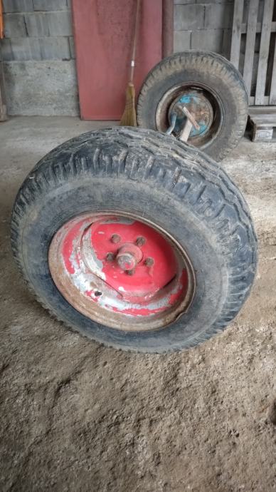 Prodajem osovinu i kotače za prikolicu u kompletu. Skinuto s prikolice za rasipanje stajnjaka.