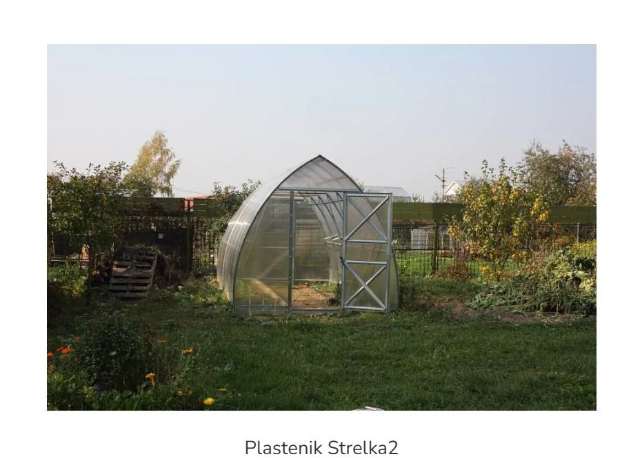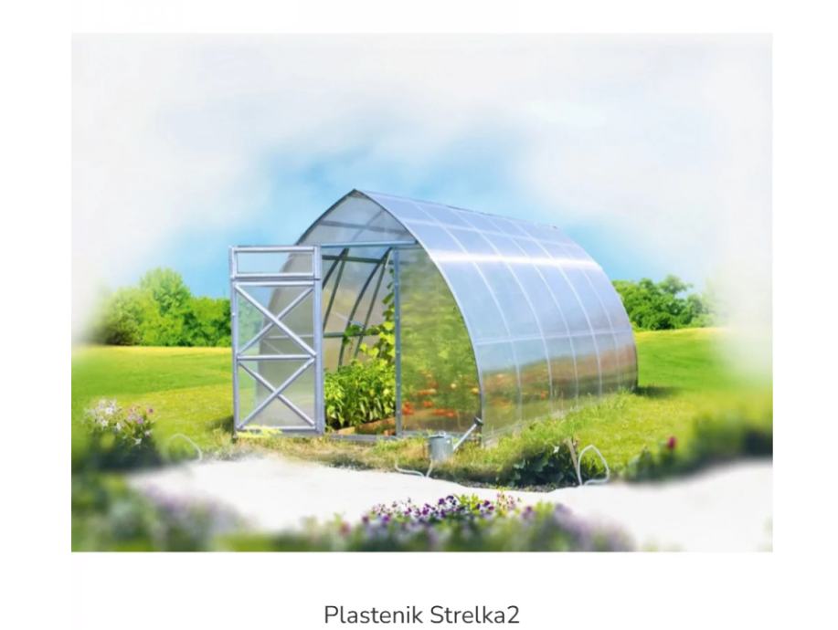 Vrtni staklenik «Strelka2» namijenjen je za stvaranje mikroklime, pogodne za uzgoj vrtnih kultura u vrtovima ili na manjim posjedima. Staklenik može biti različitih dimenzija, ovisno od zahtjeva kupca. Sa kupovinom dodatnih paketa sa segmentima za produživanje, možete osnovnu dužinu 3 m (tabela 1) produžiti, te se tako osigurati potrebnu dužinu staklenika.