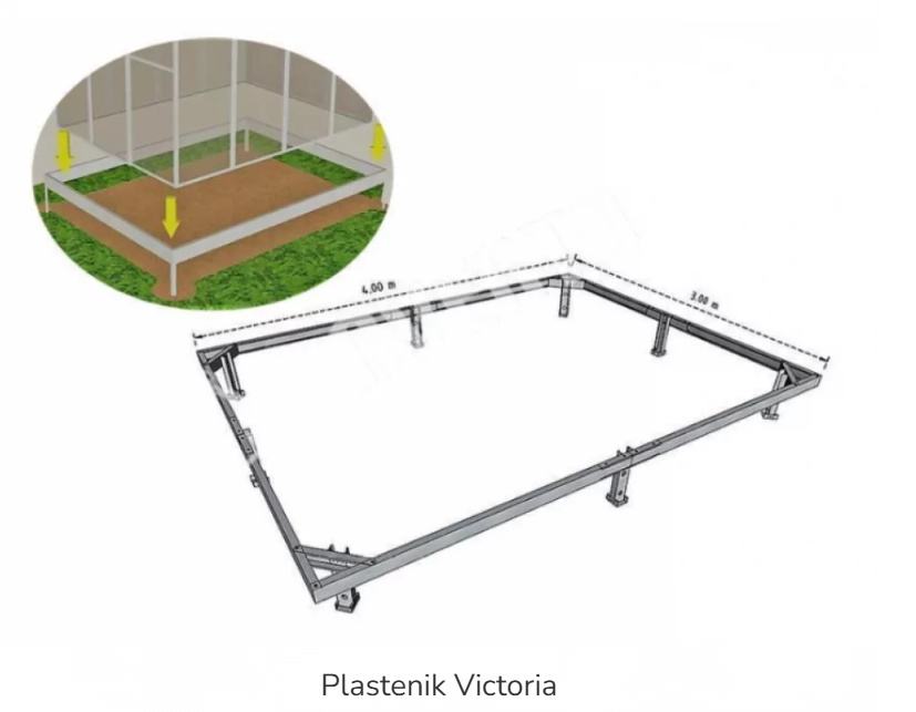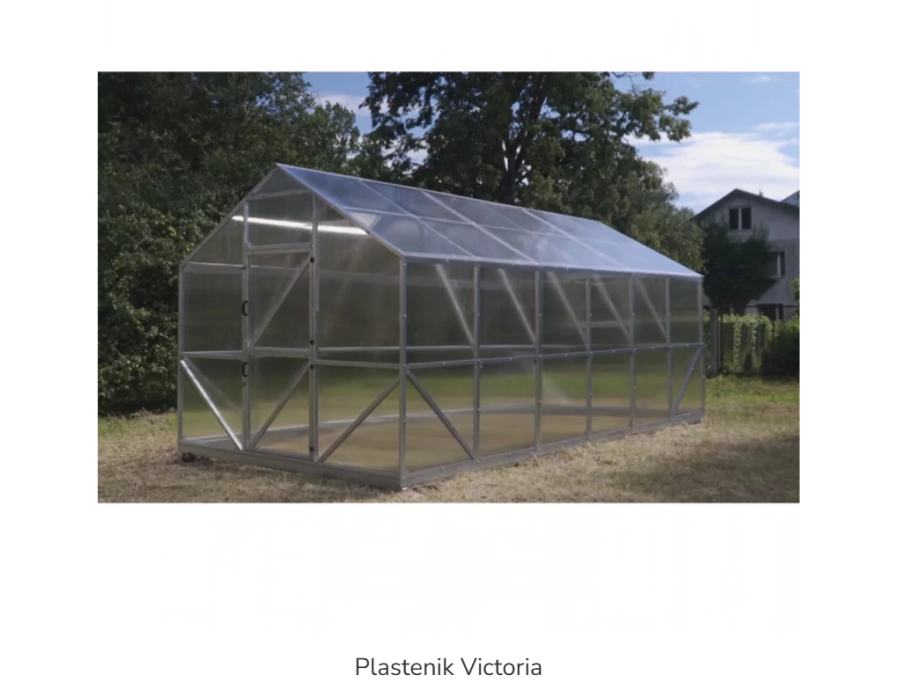 Vrtni staklenik "Victoria" dizajniran je za stvaranje mikroklime pogodne za uzgoj vrtnih usjeva u vrtovima i malim imanjima. Staklenik može biti različitih duljina, ovisno o zahtjevima kupca. Kupnjom dodatnih paketa s produžnim segmentima možete produžiti osnovnu duljinu od 2 m i tako osigurati potrebnu duljinu staklenika.