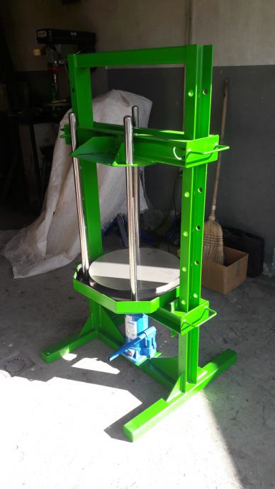 Prodajem prešu za masline, pritisak prešanja od 30-50T. Masline potrebno samljeti te staviti u jutene tanjure koji se slažu u prešu. Vrlo jednostavno za rukovanje.