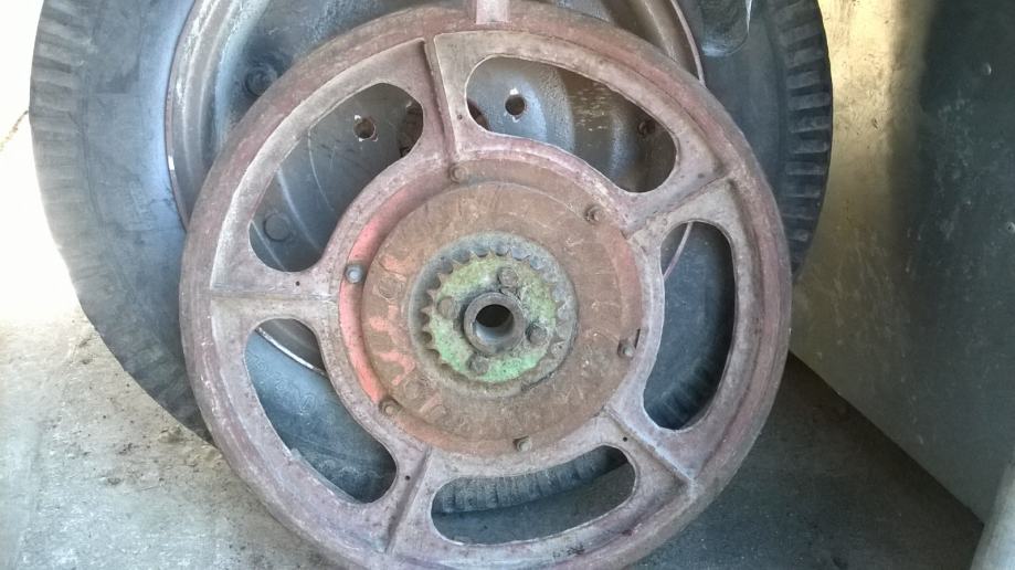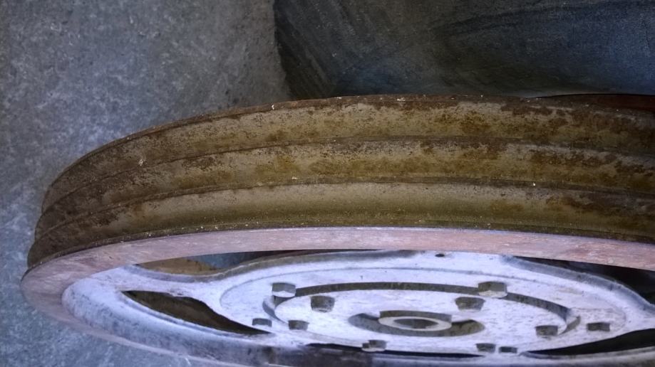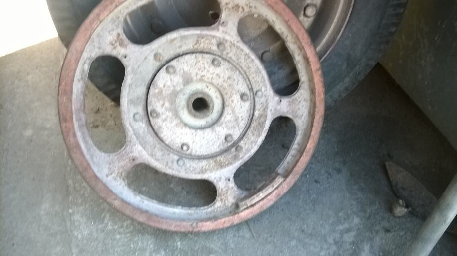 Remenica promjer 64 cm.Ima utore za tri remena.Na jednoj strani ima lančanik