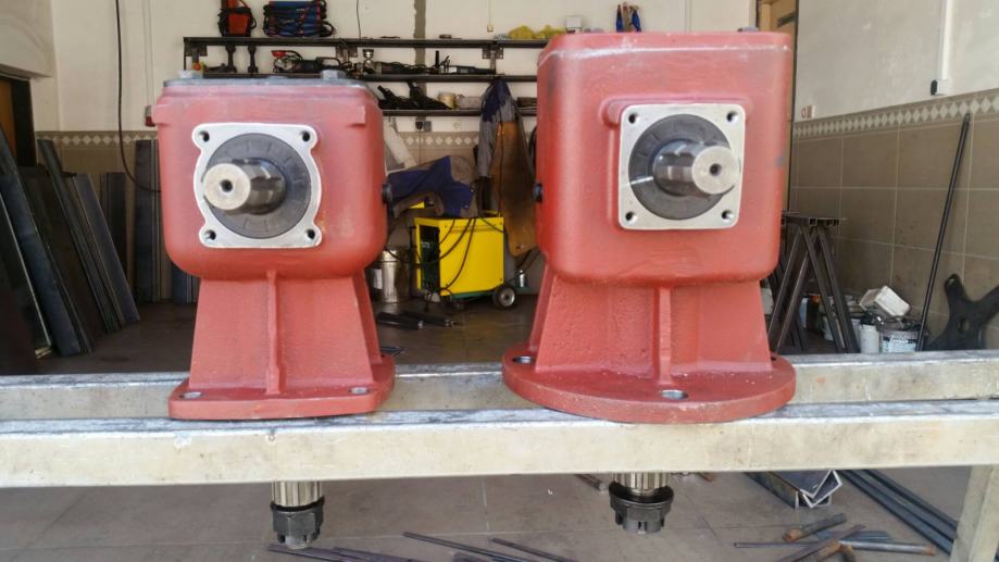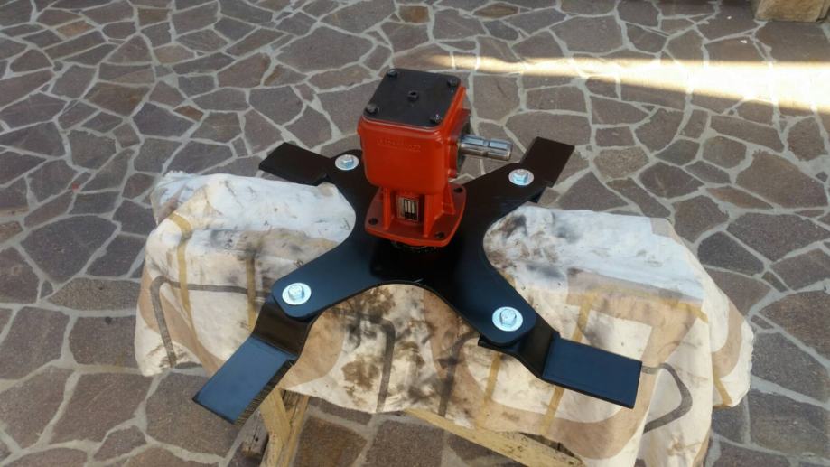 Prodajem pogonski set za roto malčer veličine 100 cm. Set se sastoji od kutnog reduktora, nosača noževa i 4 noža. Kutni reduktor za roto malčer, talijanske tvrtke Comer Industries. Reduktor (getriba ) je konstrukcijski namjenjen isključivo za roto malčer, što je vrlo bitno jer je sve dimenzionirano tako da preuzme sve sile koje djeluju na njega , osigurava jednostvavnu montažu i demontažu nosača noževa, te osigurava siguran način rada. Navedeni reduktor omjera je 1:1.92 što znači da broj okretaja na kardanu traktora multiplicira 92 %, odnosno ako npr. imate 540 okretaja na traktoru na malčeru če biti 1036 okretaja, što u kombinaciji sa 4 leteća noža daje odlične rezultate u radu. Reduktori su zaštičeni temeljnom bojom. Nosač noževa je CNC laserskim rezanjem izrezan iz jednog komada čelika (iz jedne ploče) tako da je točnost reza i rupa ispod pola milimetra što je izuzetno bitno za balans noževa te miran i siguran rad.S obzirom da veliki broj malčera koji se prodaju na ovom ili drugim oglasnicima imaju nosač noževa zavaren iz više komada želim Vam skrenuti pažnju na taj detalj. Kada je nosač noževa varen iz više komada njegova geometrija je daleko od savršene, prilkom varenja materijal se jako zagrijava što uzrokuje deformacije u geometriji, unutar materijala dolazi do naprezanja koja mogu ostati "zarobljena" u materijalu te prilikom rada stroja usljed velikih dinamičkih opterečenja te dužeg vremena korištenja (veliki broj okretaja tj. ponavljanja opterečenja dovesti do "loma" (tkz. zamor materijala).