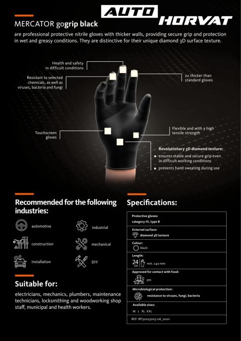 RUKAVICE MERCATOR GOGRIP PRO CRNE - KUTIJA 50 kom !