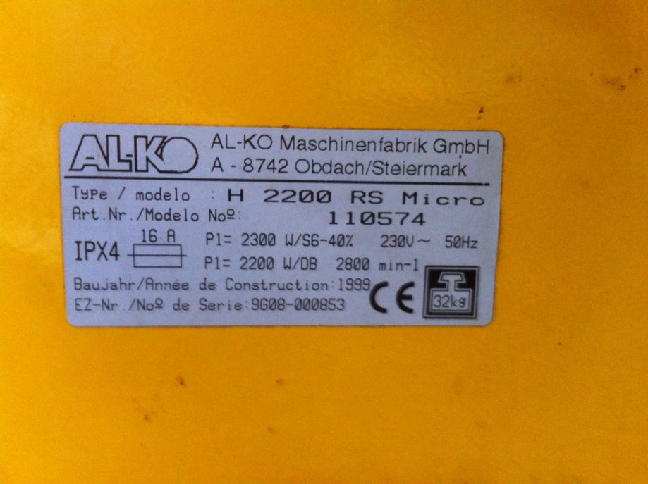Sjeckalica za granje Alco kao nova , komplet metalna dupli noževi , motor 2.200 wati odlično stanje