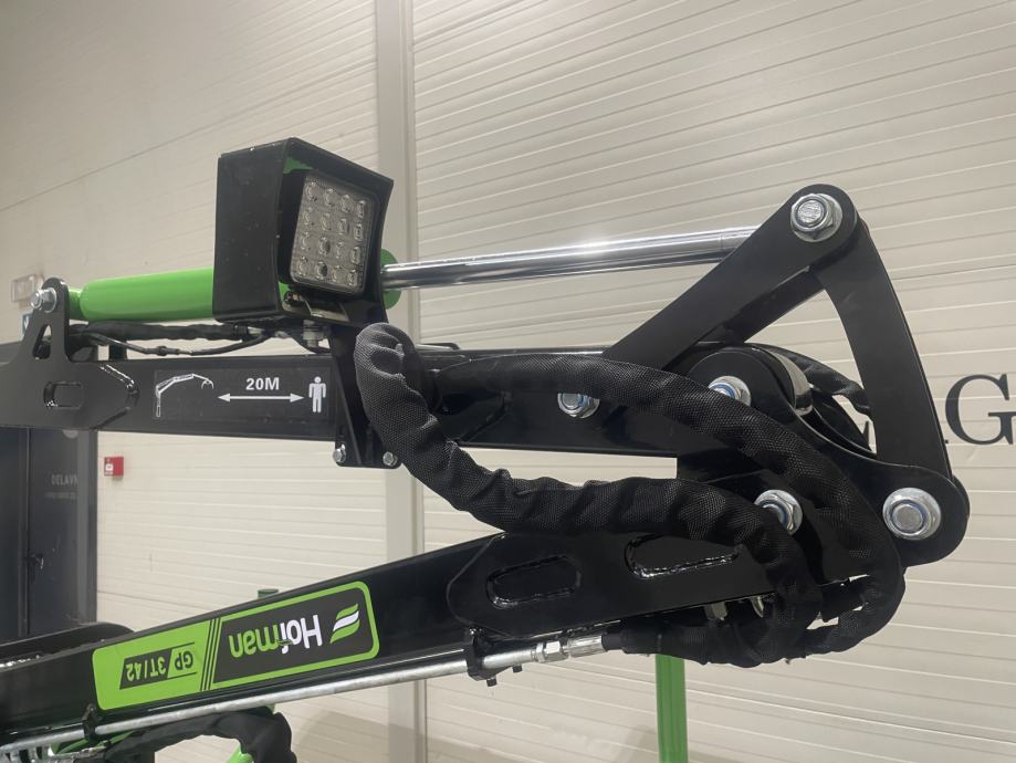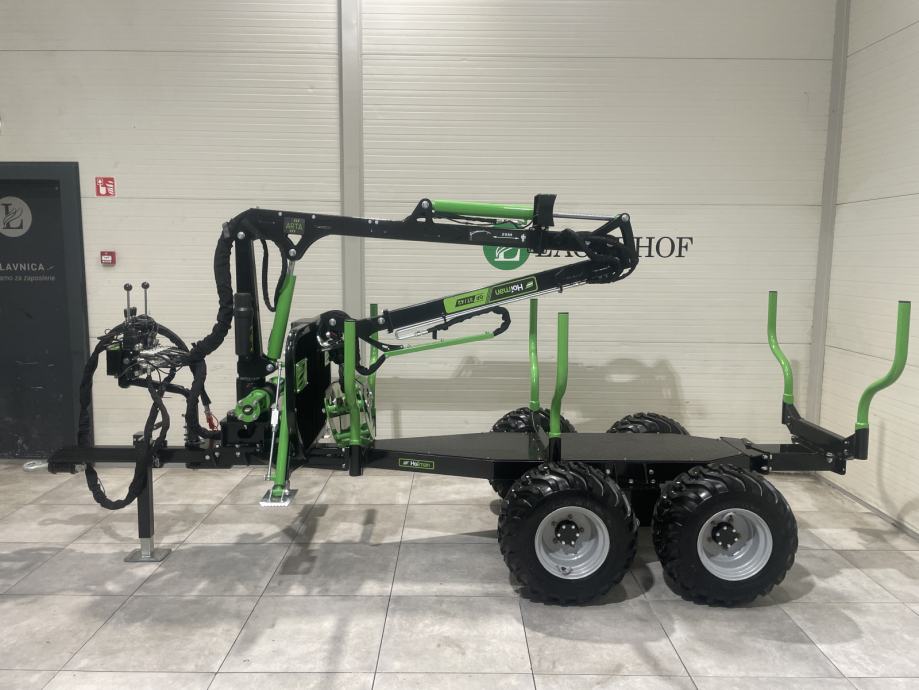 Šumarska prikolica GP 3T/42PRIKOLICA-Nosivost: 3T-Dvocjevna šasija, veličina okvira: 600X100X4 mm-Dužina utovarnog prostora: 2834 mm-Ukupna dužina: 4402 mm-Širina prikolice: 1486 mm-Težina prikolice: 410 kg-Kotači: 26 X12-12-Nema kočnica, bez vlastite pumpe i spremnika-Joysticki-Potporna noga-Mehaničko pomicanje šasijeTELESKOPSKA RUKA (KRAN)-Dužina bez teleskopa: 3500 mm-Dužina s ispruženim teleskopom: 4200 mm-Snaga dizanja na 1m od prikolice: 700 kg-Snaga dizanja sa skroz ispruženim teleskopom: 240kg-Uključena kliješta i rotator 1 t !Ukupna težina prikolice sa teleskopom: 850kgAKCIJA: KARDAN GRATISMogućnost DOSTAVE!www.hofman.atZadržavamo pravo promjena i pogrešaka u cijenama i tehničkom opisu te za iste ne preuzimamo odgovornost.