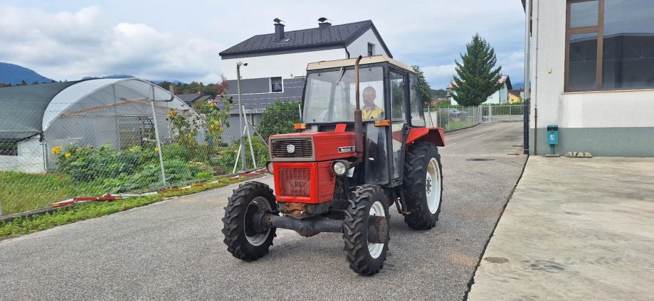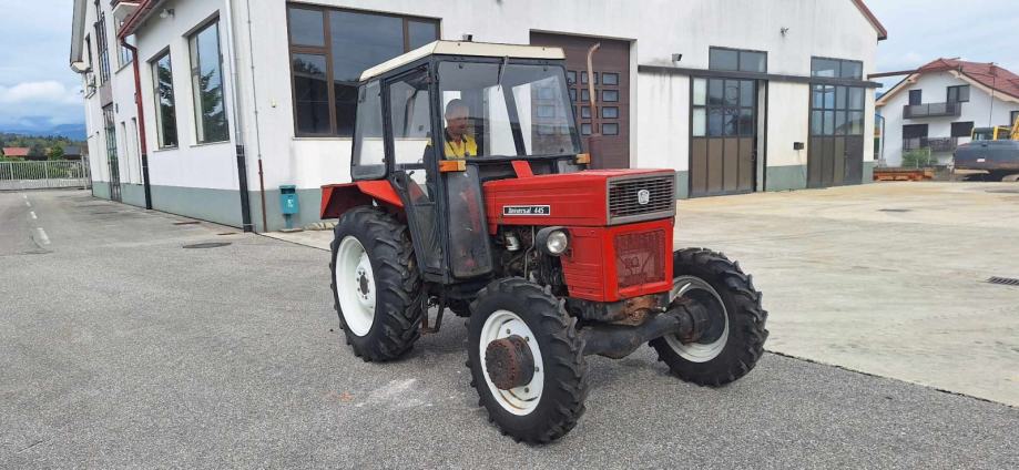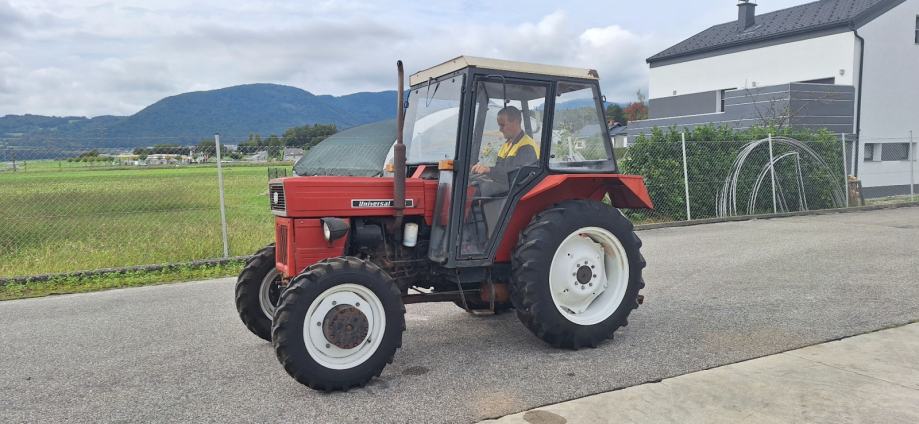 Traktor UNIVERSAL 445, godina 1999., tvornička boja, instalacija s manometrom za kočenje, potpuno nove gume, crna udobna tapecirana kabina, automatska kuka