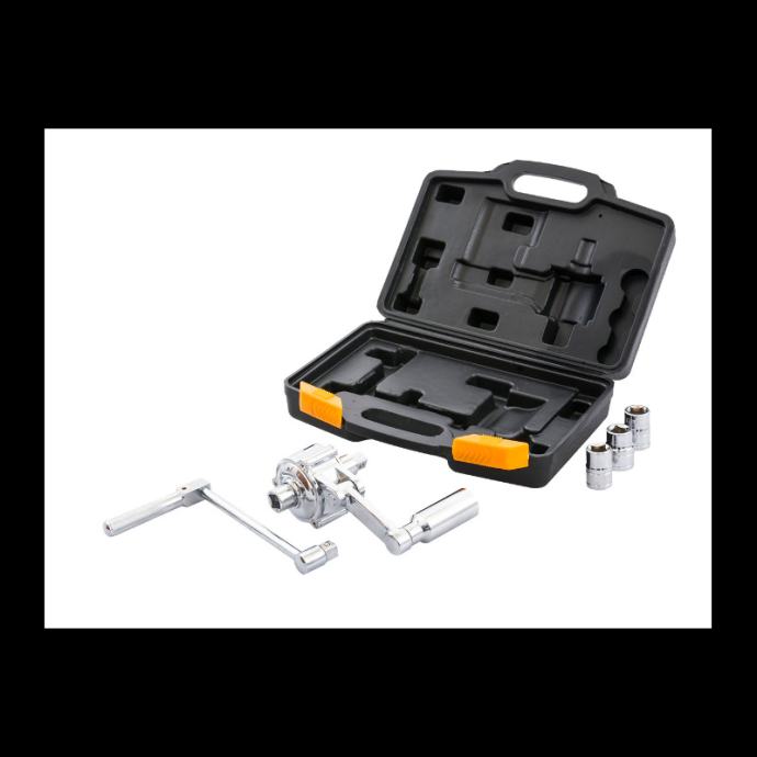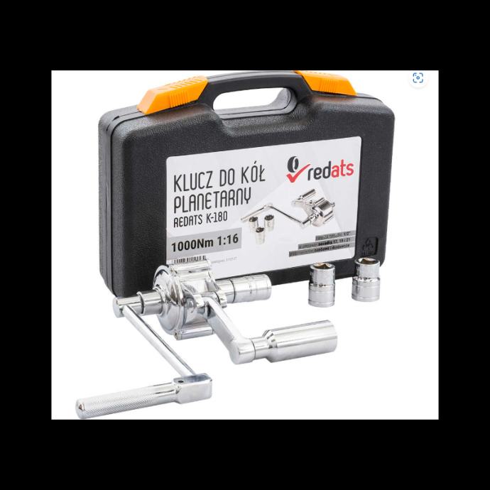 ključ s omjerom snage 1:16savršen za rad s kotačima osobnih automobila i autobusaključ je pakiran u praktičnom kovčegu s praktičnim pretincima za svaki elementugodan radključ je vrlo lagan, a zahvaljujući maks. okretnom momentu (1000 Nm) osigurat će udobno odvrtanje kotača u svim uvjetimapokretni mehanizam lijevo-desno osigurava rad bez upotrebe velike silestabilnost odvrtanjazahvaljujući univerzalnoj bravi (bez obzira na broj klinova), ključ čvrsto i sigurno drži kotač pri odvrtanjuizdržljiv materijalključ zupčanika izrađen je od krom-vanadij čelika, što osigurava izvrsnu otpornost na koroziju i mehanička oštećenjaKako koristiti ovaj ključ?pričvrstite bočnu ruku na najbližu igluzatim odvrnite sljedeće u smjeru kazaljke na satucijeli setSet sadrži:1x 17 mm utičnica1x 19 mm utičnica1x 21 mm utičnica1x nastavak za odvrtanje kotača]]>