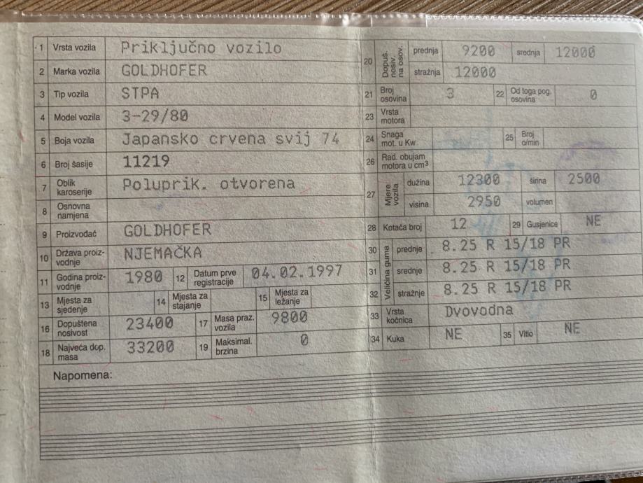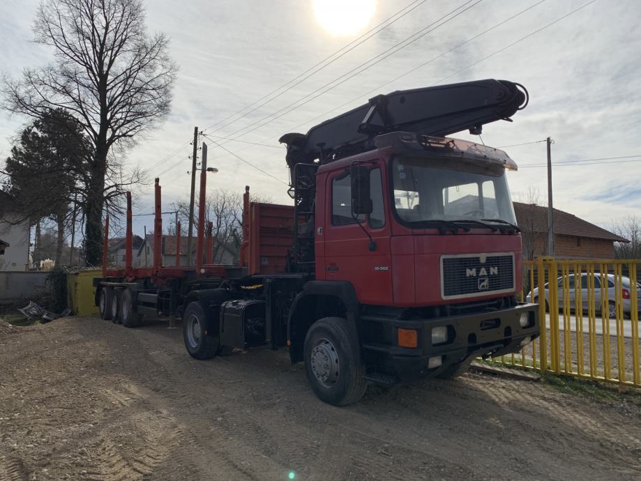 Goldhofer poluprikolica sa pokretnim podom, šticama na hidrauliku, dva vitla za navlačenje, zračnim jastucima, podiznom prvom osovinom, zadnjom osovinom na elektro-hidraulično upravljanje. Potreban manji servis na poluprikolici. Prodaje se u kompletu,ali moze i posebno bez tegljača MAN 19-362 sa pogonom 4x4 i dizalicom Jonsered. Kamion je u odličnom stanju. Cijena prikolice 4000€+pdv, kamiona 19000eur plus PDV Molim zvati od 08-19h na 098 376933 Vjekoslav