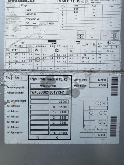 Kogel S 24-1, podizna osovina, SAF, paletar, 2016 god.