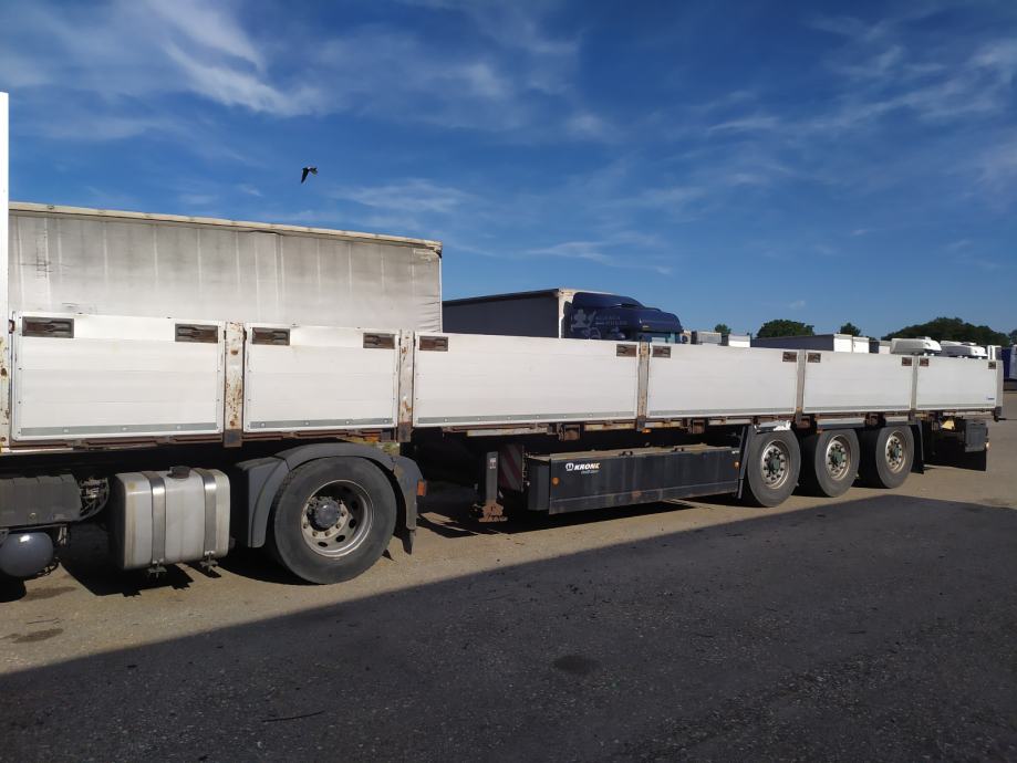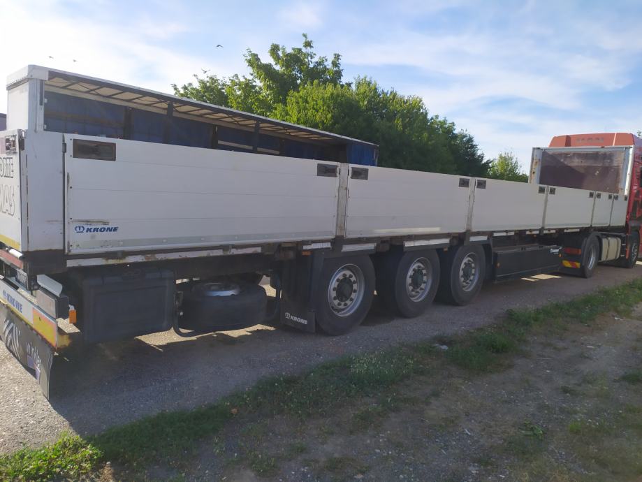 Poluprikolica Krone građevinarka(pojačana šasija)...reg. 08/2025...zakretna zadnja osovina(swenk)...ima table na izvlačenje za prijevoz vangabaritnog tereta...španeri sa sajlom za teške terete...stranice se mogu skinuti...paletar...gume..kočnice...sve ispravno..novi svih 6 amortizera...zadnji novi zakretni gibnjevi...stanje super...i sve što se može vidjeti na prikolici...