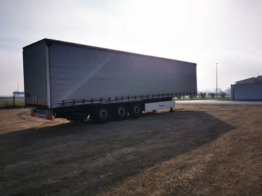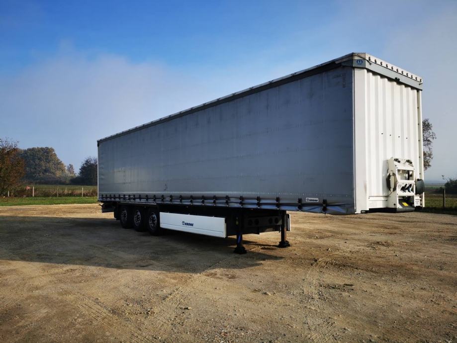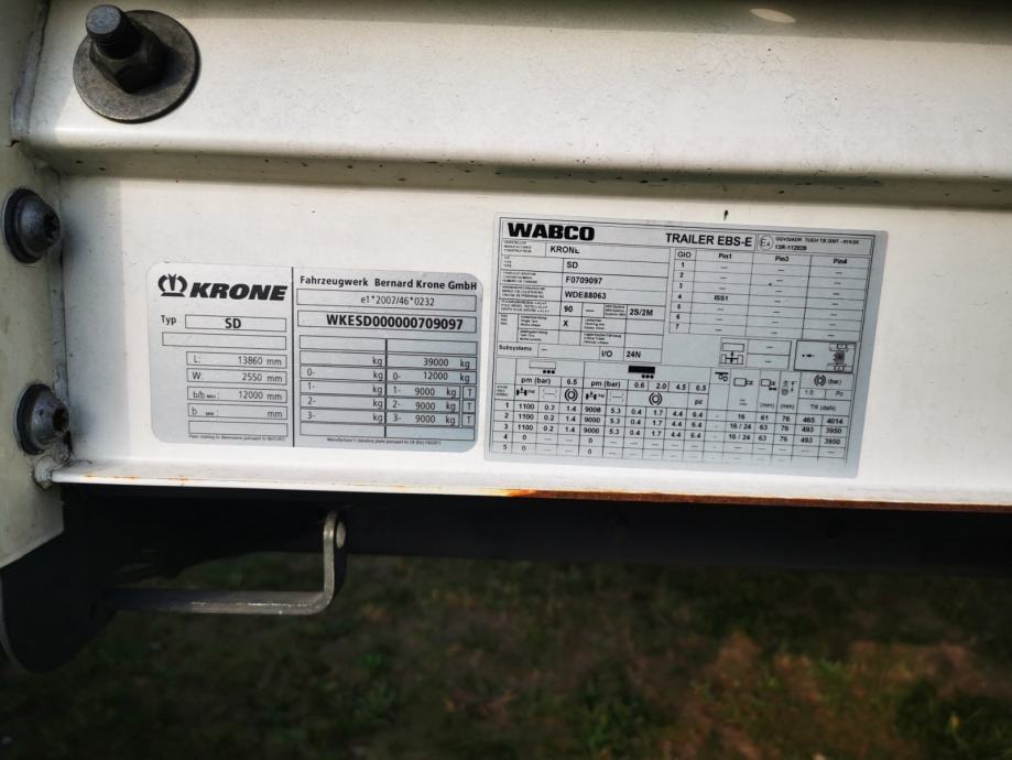 Krone SD, u prometu od 2016, ABS, EBS, zračni ovjes, disk kočnice, podizni krov,paletar, kutija za alat,nosivost 29.449 kg, gume 385/65 R22,5. Gume na 80%, aluminijska vrata, zatezači cerade s osiguračima, prikolica uredna