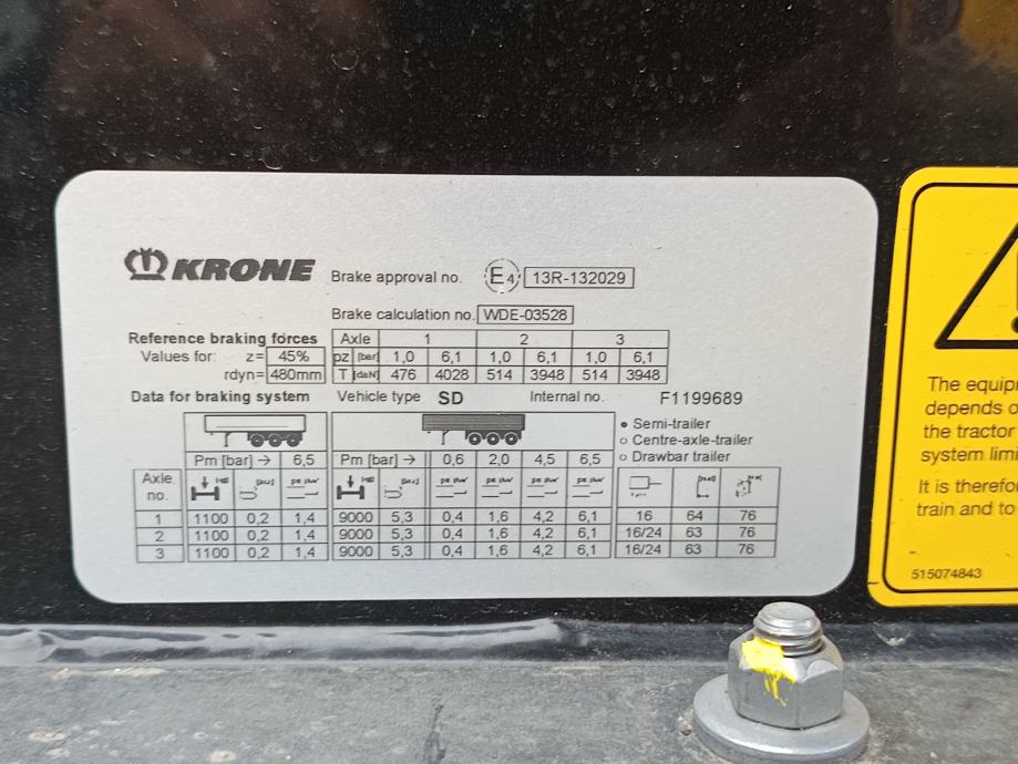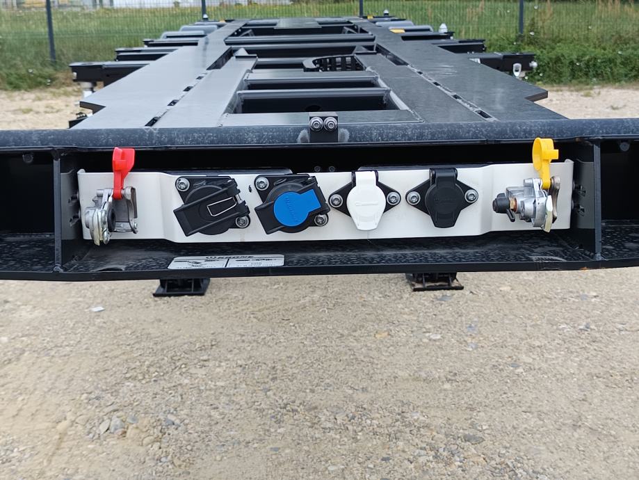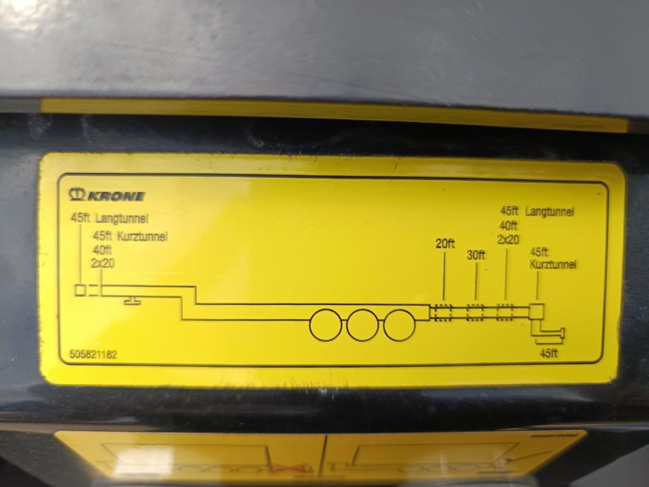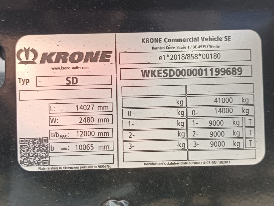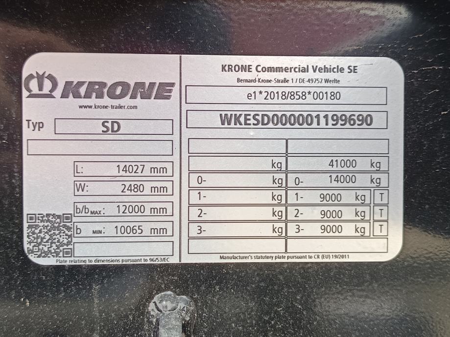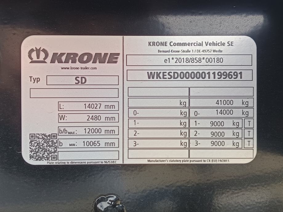 Krone SD kontejnerica 20 - 45 ft, u prometu od 07/2025. god. ABS, EBS, disk kočnice, zračni ovjes, Krone osovine, podizna osovina, stražnja ekstenzija, nosač za rezervni kotač, kutija za alat, NDM 40.000 kg, masa praznog vozila 5.590 kg, nosivost: 34.410 kg, gume 385/55 R22,5.