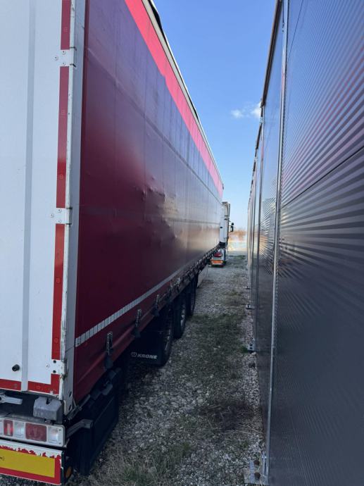 Prodajemo Tautliner Krone SD, Prvi Vlasnici , Pomični krov, Zadnja Vrata, Podizni krov(može se podići krov na hidrauliku radi lakšeg bočnog utovara pa se nakon utovara spustiti, gume 385/55R22,5 visina unutra 275cm