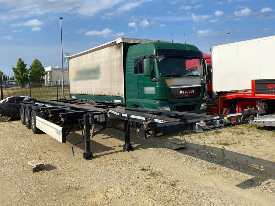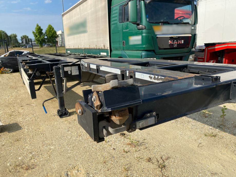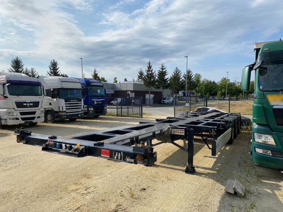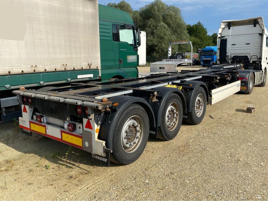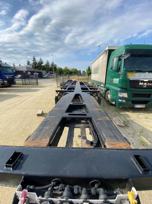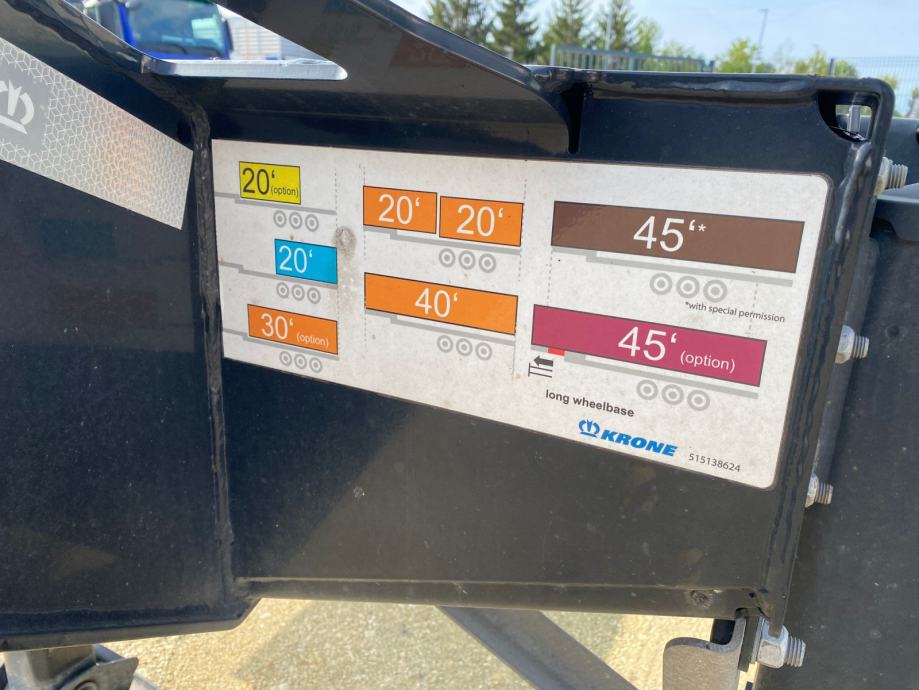 Krone SDC BoxLiner eLTU50 kontejnerica 20-45 ft, u prometu od 01/2023. god. ABS, EBS, disk kočnice, zračni ovjes, Krone osovine, podizna osovina, stražnja ekstenzija, razmak između osovina 1.410 - 1.310 mm, nosač za rezervni kotač, NDM 40.000 kg, masa praznog vozila 4.720 kg, nosivost: 35.280 kg, gume 385/55 R22,5. VIN: WKESD000000983137