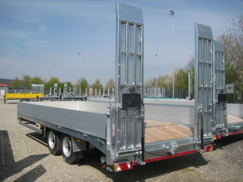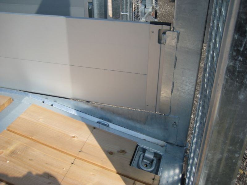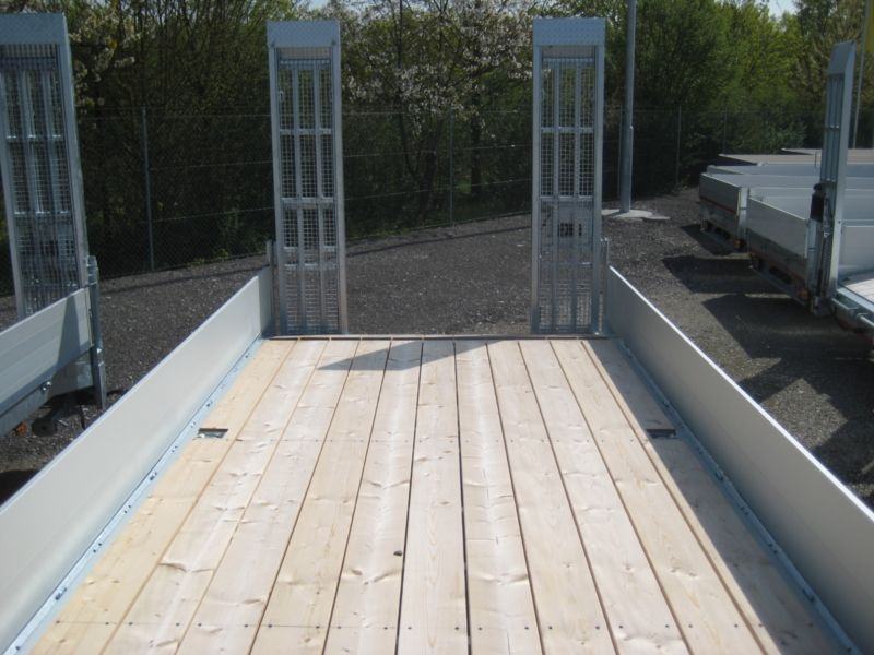 Vruće cinčana s drvenim podom debljine 40mm, demontažnim stranicama od eloksiranog aluminija debljine 25mm, visine 400mm, učvrščivači tereta 3 para 6tona unutar platforme i 7 para 2 tonskih integriranih u okviru platforme.