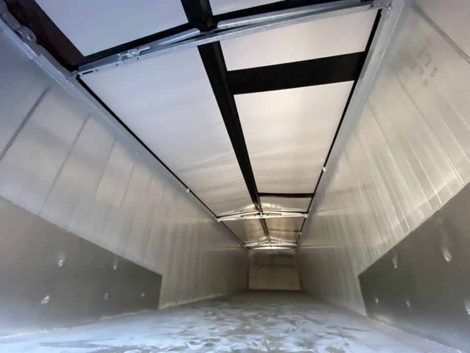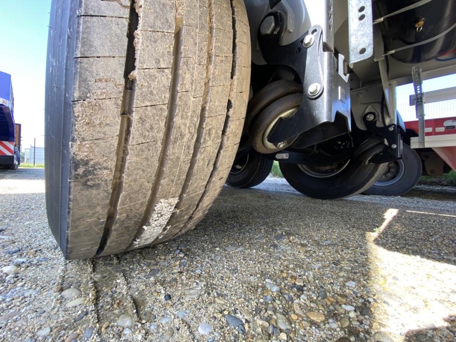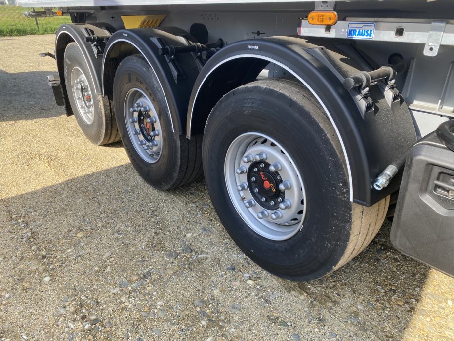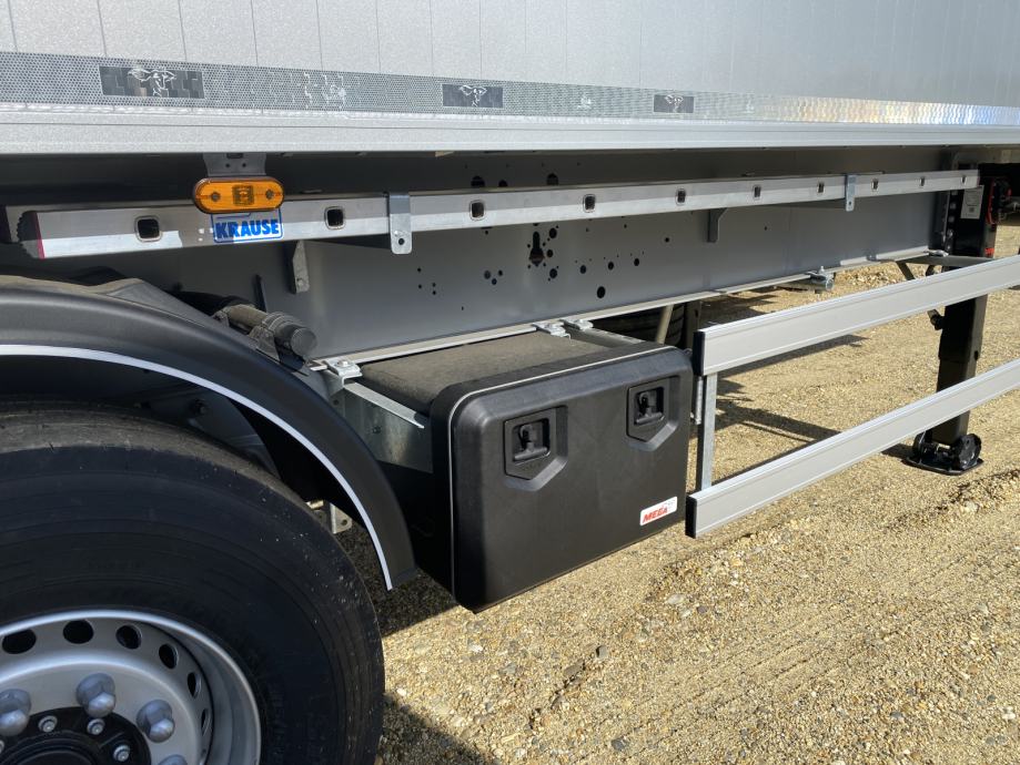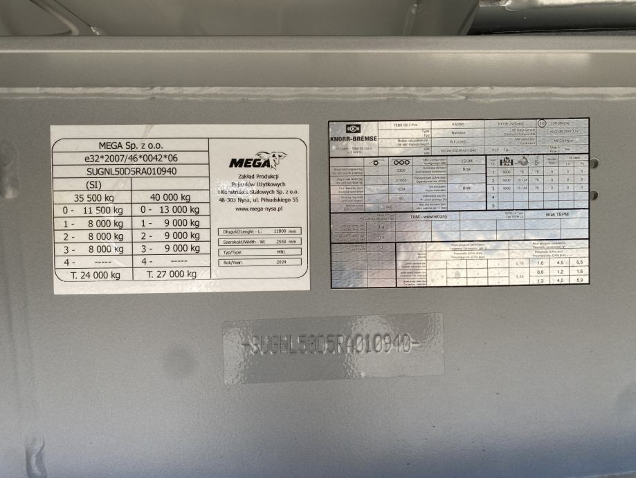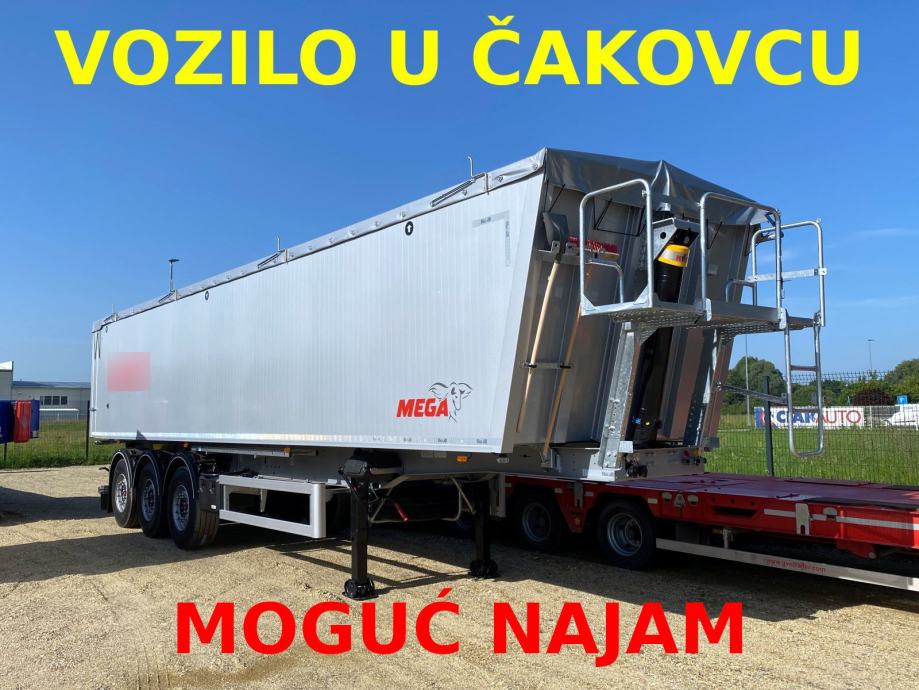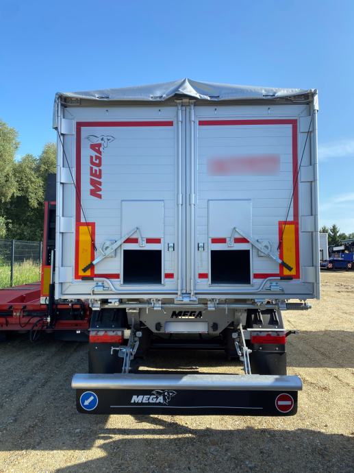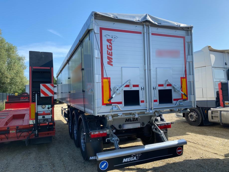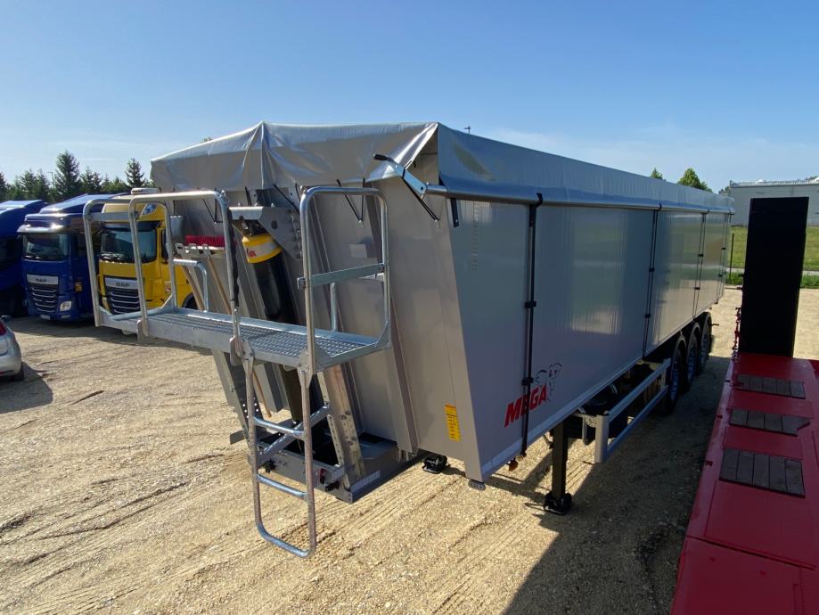 MEGA Light kiperica zapremnine 50m³, u prometu od 05/2024 - NOVO VOZILO - ABS, EBS, zračni ovjes, disk kočnice, SAF osovine, podizna 1. osovina, prednji podest, stražnja portalna vrata, rolo pokrivna cerada, rezervni kotač, sanduk za alat, NDM 35.500 kg (40.000 kg), masa praznog vozila 6.300 kg, nosivost 29.200 kg, dimenzije vozila DxŠxV: 11.800 mm x 2.550 mm x 3.620 mm, visina kopčanja 1.250 mm, gume 385/65 R22,5.
