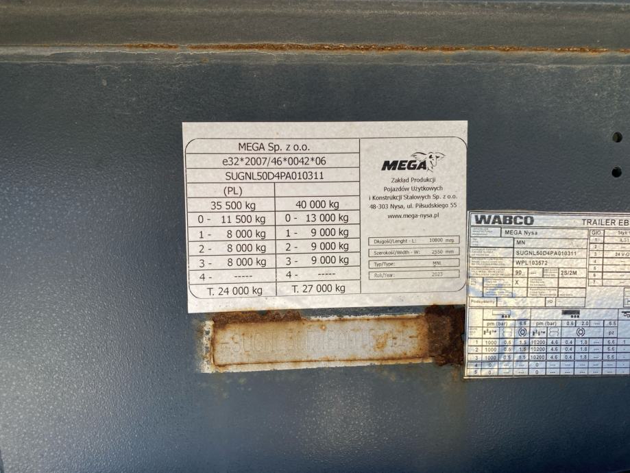 MEGA LIGHT alu kiperica 50 m³, u prometu od 10/2023, ABS, EBS, zračni ovjes, disk kočnice, SAF osovine, podizna osovina, dimenzije vozila DxŠxV: 10.800 mm x 2.550 mm x 3.790 mm, NDM 35.500 kg, masa praznog vozila 6.150 kg, nosivost 29.350 kg, gume 385/65 R22,5.