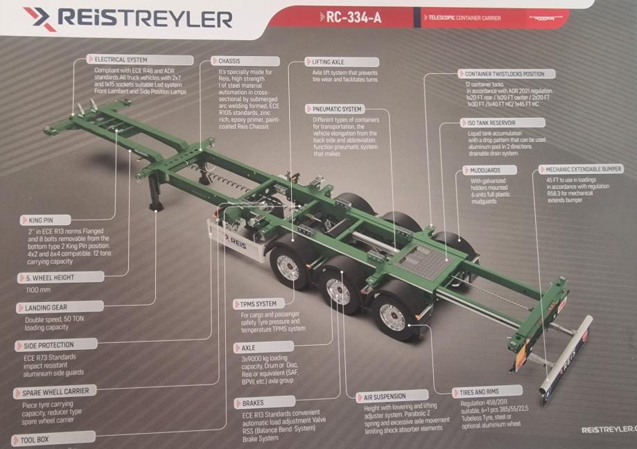 REISTREYLER prikolica za kontejnere izvlačna NOVO!!, 2025 god.