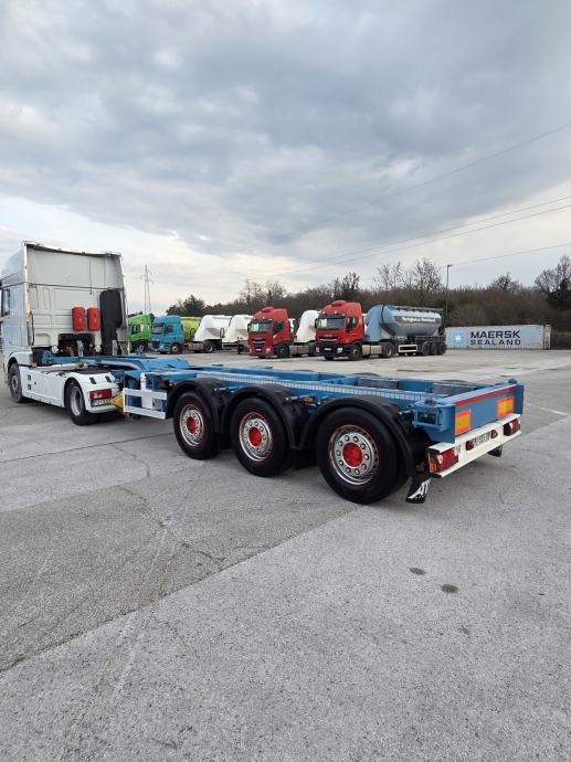 Kontejnerica, 2005g. , rastezljiva u sredini i nazad, za sve vrste kontejnera, reg. do 15.06. , mercedes osovine, nema podiznu , gume na 70 % , bez zamjena, moguće pogledat na Kukuljanovu , 5800 e