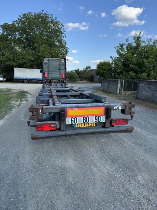 Poluprikolica za prijevoz kontejnera sa prihvatima za 2x 20', 30' i 40' i sa stražnjom ekstenzijom za 45' kontejnere, disk kočnice, gume dimenzija: 385/55 22,5, Hubdometar: 349.549km, vozilo je u sustavu PDV-a.