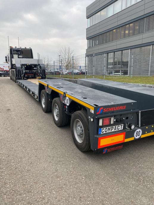 Prodajemo prikolicu Scheuerle Eurocompact FL 03 sa razvljačivim koritom 7,5 + 5m, visina utovara 325mm, hidrauličko ogibljenje i zaokretanje (pendel ososvine).