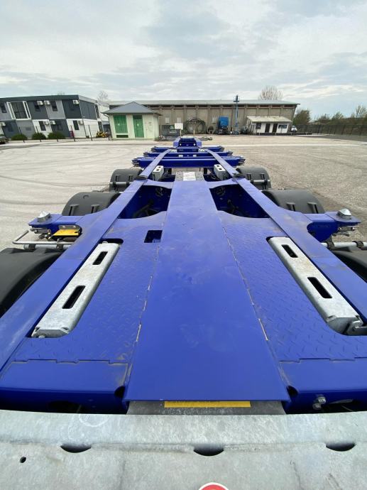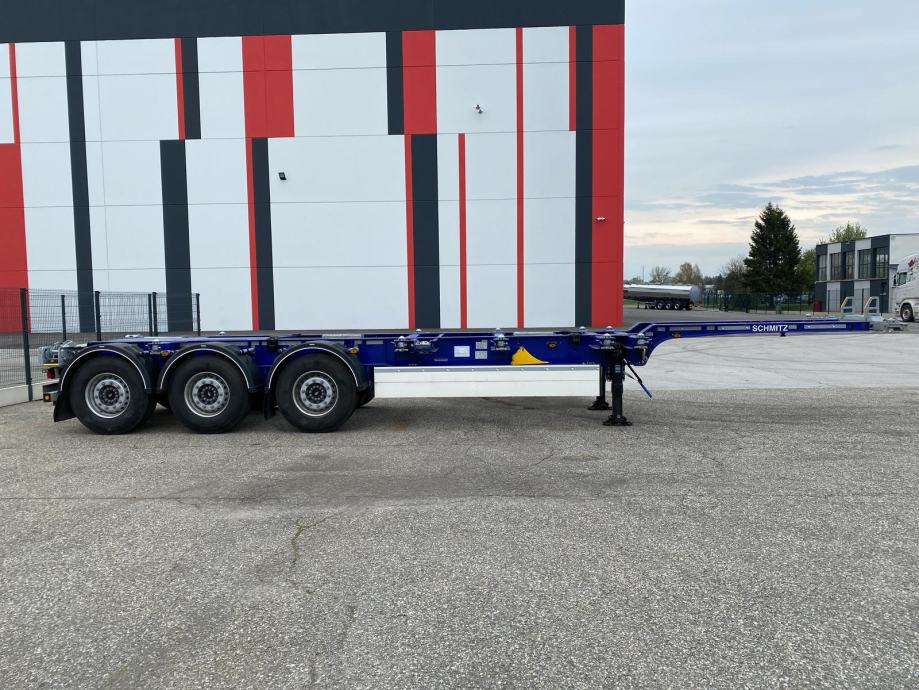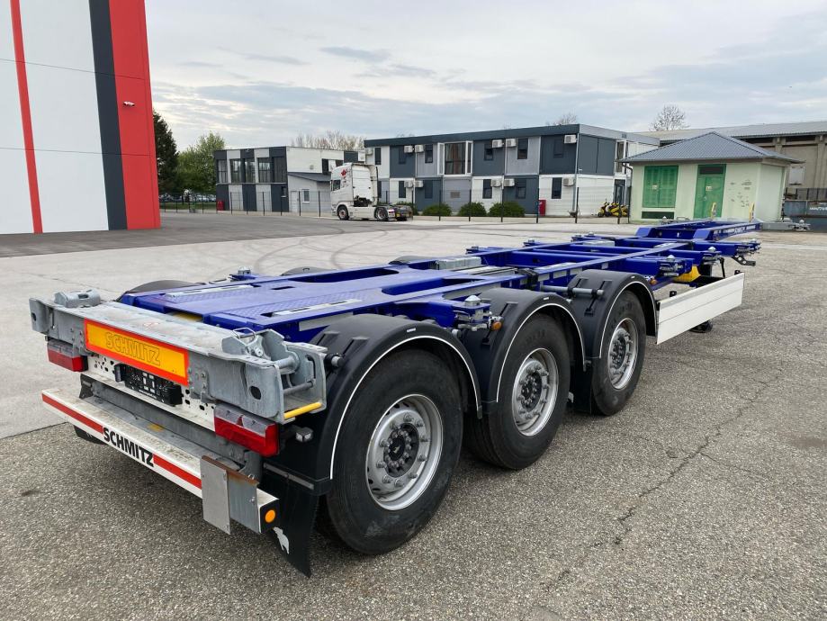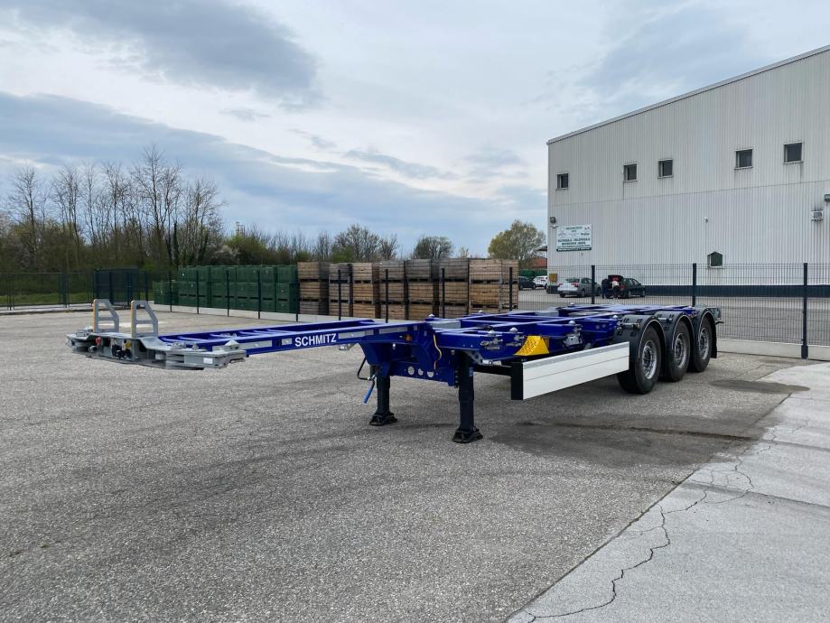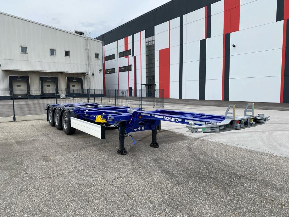 Schmitz Cargobull SCF 24G - 45 EURO kontejnerica - NOVO VOZILO - ABS, EBS, disk kočnice, zračni ovjes, podizna osovina, Schmitz osovine, pneumatsko stražnje izvlačenje, mogućnost nadogradnje 1x20', 2x20', 1x40', 1x45', NDM 39.000 kg, masa praznog vozila 5.821 kg, nosivost 33.179 kg, gume 385/55 R22,5 (100%).