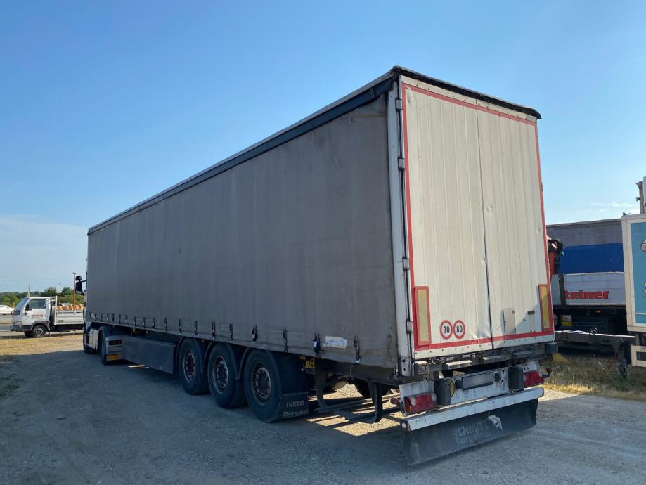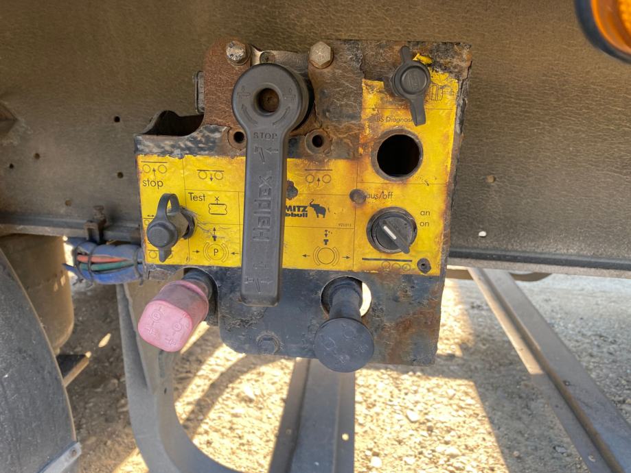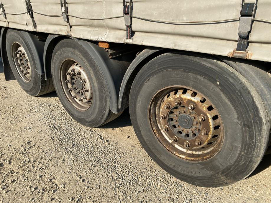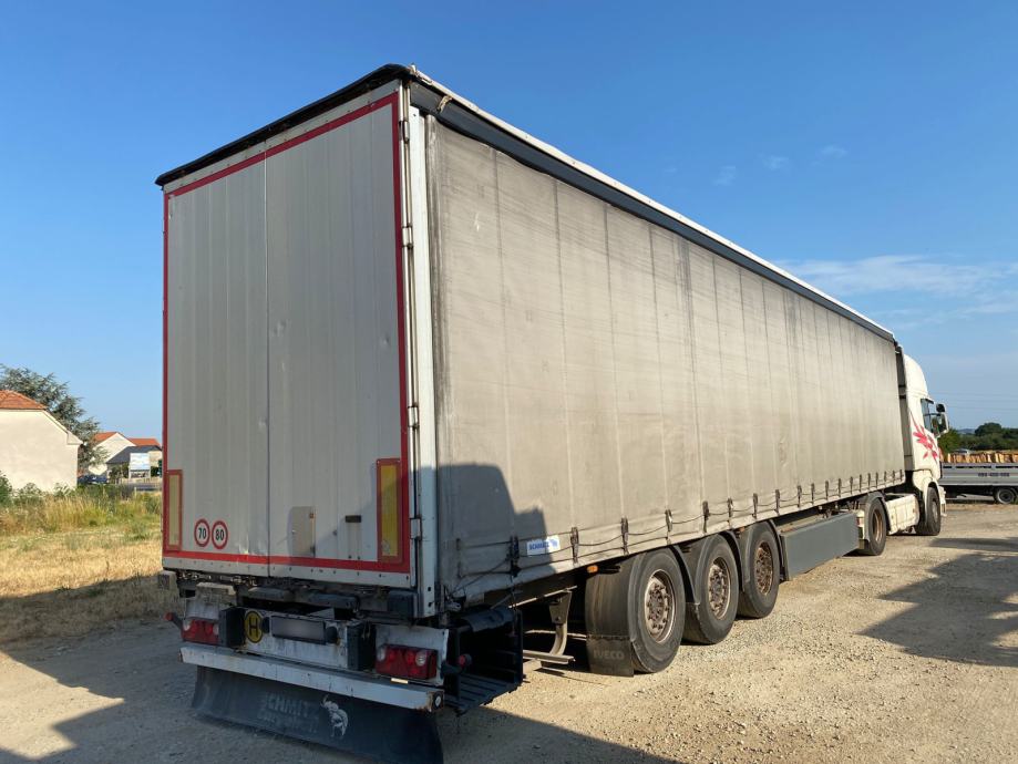 Schmitz SCS 24/L, u prometu od 2004, ABS, EBS, zračni ovjes, disk kočnice, SAf osovine, podizna osovina, paletar, NDM 33.000 kg, masa praznog vozila 6.900 kg, nosivost 26.100 kg, gume 385/65 R22,5. VIN: WSMS6980000530106