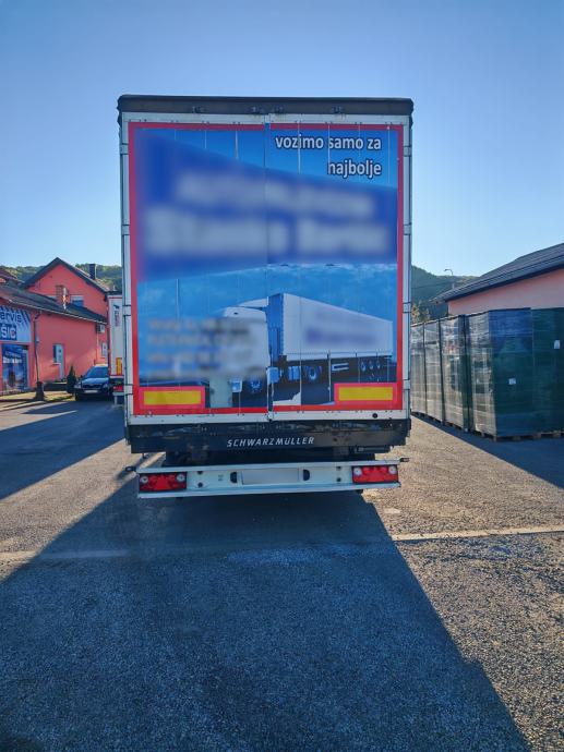Schwarzmuller S1 (J-Serie), u prometu od 01/2015, ABS, EBS, zračni ovjes, paletar, kutija za alat, rezervni kotač, NDM: 36.000 kg, masa praznog vozila: 6.610 kg, nosivost: 29.390 kg, gume 385/55 R22,5. VIN: VAVJS1339ED352766