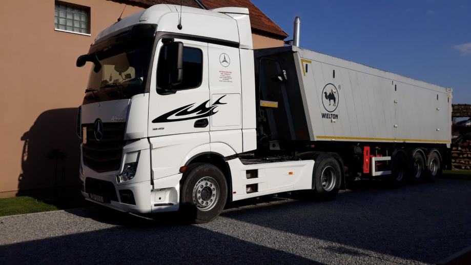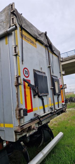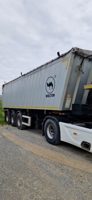 1 kom. poluprikolica Wielton, aluminijski kiper, 2018.g., 3 osovine SAF sa dobošima, 1. osovina podizna, prednji podest, rolo cerada, nosač rezevne gume, nogari Jost 25 tona, volumen 40 m3, itd.