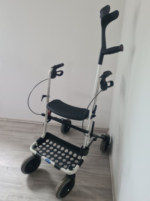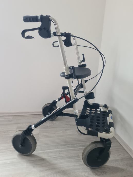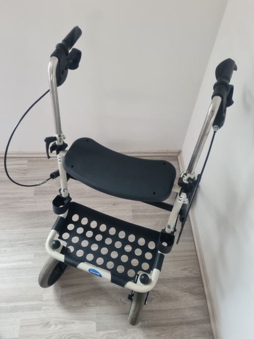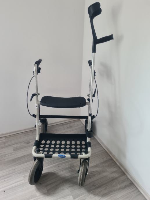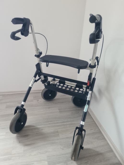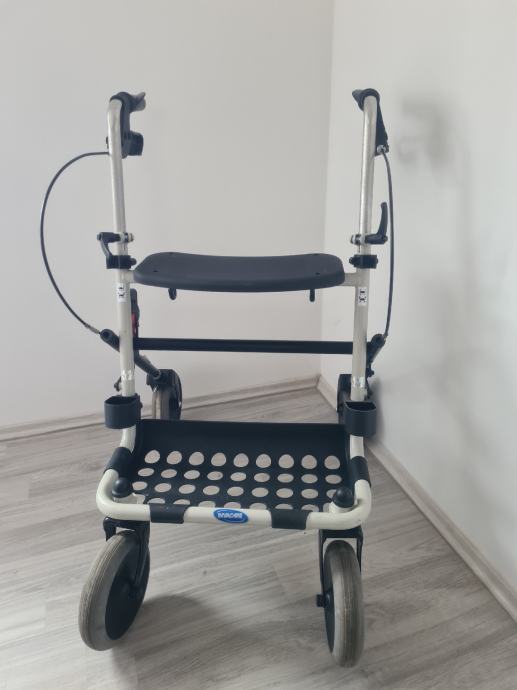 Hodalica za starije i/ili nemocne, podesiva po visini, sklopiva, sa kocnicama, kosarom i stakom, takoder sa sjedalicom, max tezina podloska na kolicima 7kg, max tezina nosivosti hodalice 130kg.