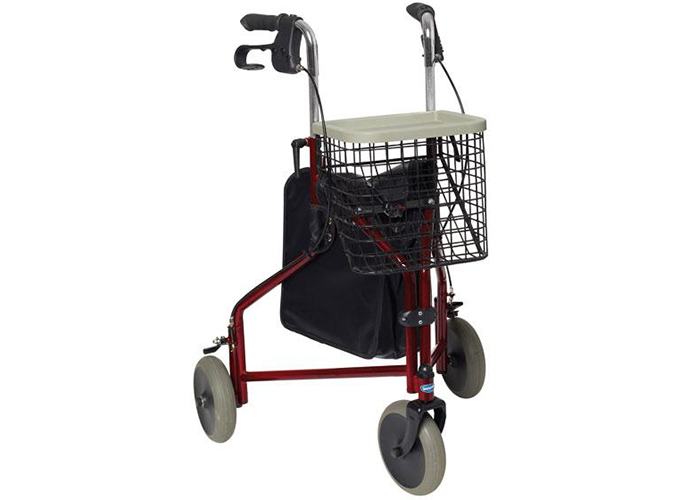 opremljen kočnicama, sklopivom ramom,košarom,tacnom.