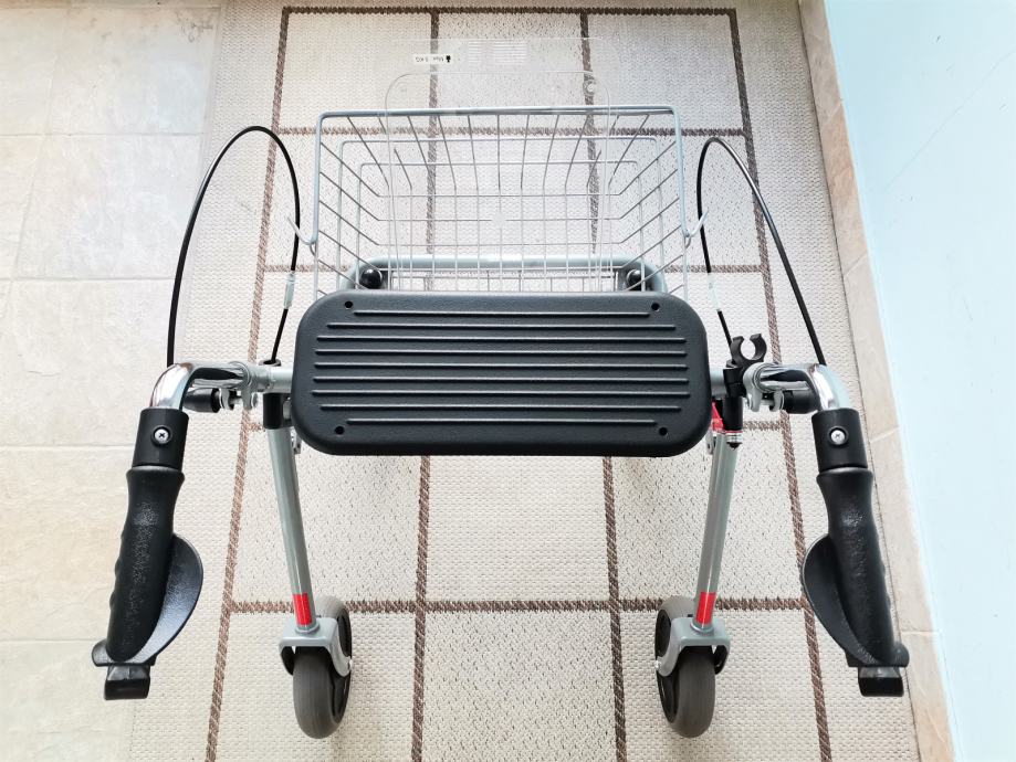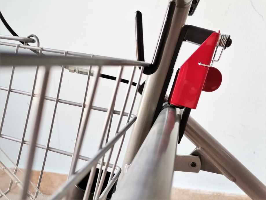 Cijela konstrukcija pomagala za hodanje je čvrsto i stabilno izrađena. Na desnoj strani ispod sjedala postavljen je crveni sigurnosni čep koji sprječava automatsko sklapanje rolatora. Premještanjem sigurnosnog čepa, rolator se brzo i jednostavno može sklopiti za lakši transport ili pohranu kad se ne koristi.