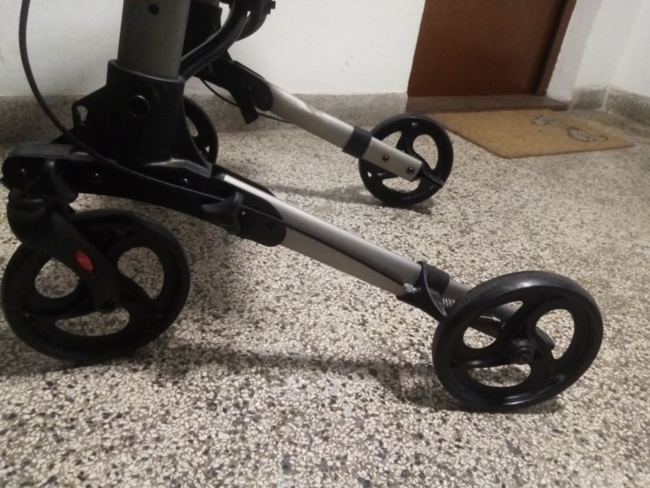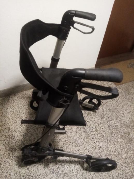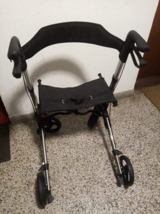 Kvalitetna hodalica na 4 kotača fi 20 cm, sa duplim kočnica. Prednji kotači su okretni, stražnji su fixni. Podesiva je po visini, sklopiva.