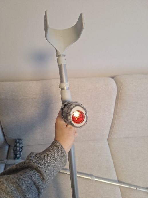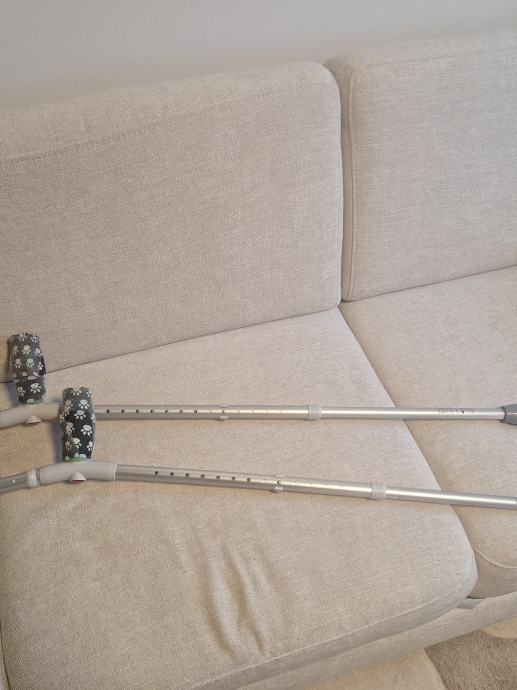 Stake u super stanju bez ostecenja. Na njima su zarolane medicinske role za zastitu šake pri hodanju-značajno je ugpdnije i lakše. Može se skinuti ako ẓ̌elite ili preko rolati dalje.