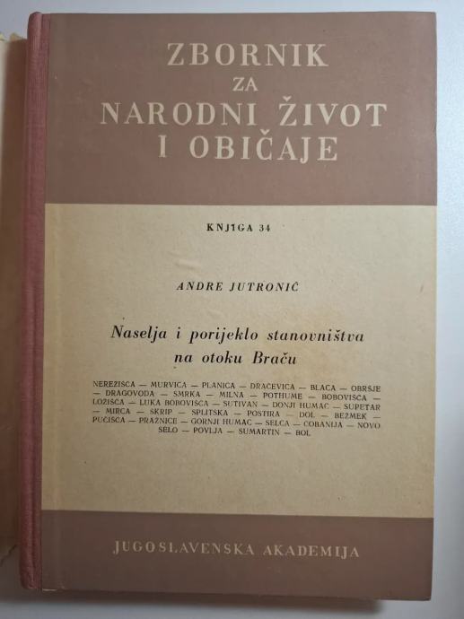 Naselja i porijeklo stanovništva na otoku Braču : antropogeografska ispitivanja / Andre Jutronić