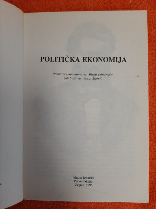 U povodu stote obljetnice smrti prof. Blaža Lorkovića Katedra političke ekonomije Pravnog fakulteta u Zagrebu objavljuje ostavštinu svoga bivšeg rektora i profesora koji je i utemeljio političku ekonomiju na tom fakultetu još 1872. Predavanja Blaža Lorkovića bilježio je Josip Šilović, i sam profesor fakulteta od 1890.-1924., a rukopis se čuvao u trezoru knjižnice Pravnog fakulteta.