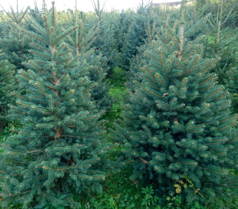 Prodajem oko 200 komada božićnih drvaca, srebrna smreka (punges), oblikovanih, prva sječa, 1.6 do 2 metra.