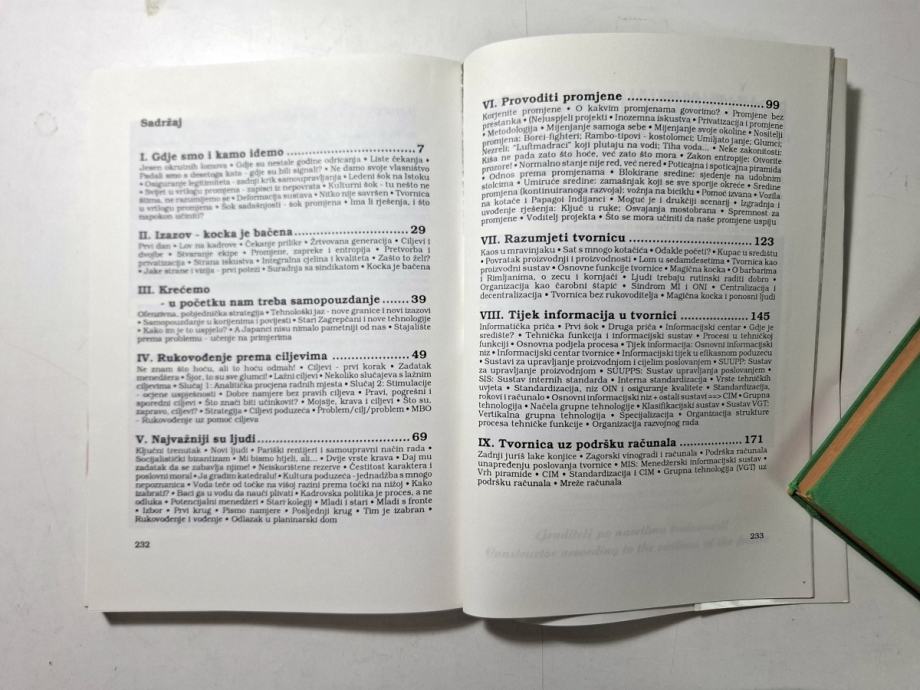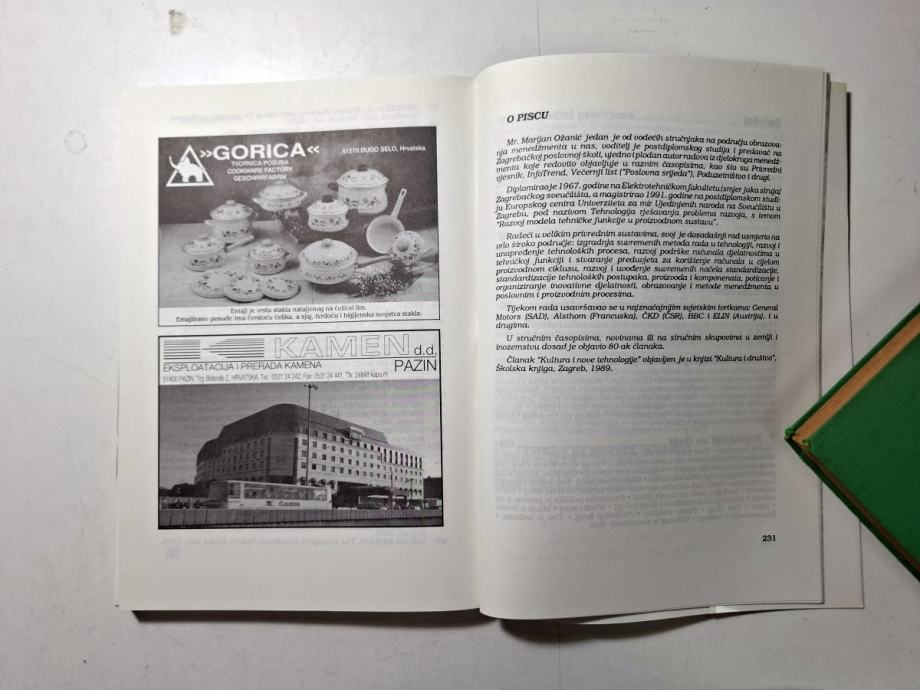 Specifična situacija u hrvatskom gospodarstvu - prekid sa starim načinom poslovanja i prijelaz na novi - zahtijeva i specifičan pristup novonastalim problemima. Koristeći iskustva iz sustava koji funkcioniraju, autor ih je nastojao prilagoditi, uz njihovo puno uvažavanje, našoj trenutačnoj situaciji. To znači da se radi o sustavu koji još ne funkcionira i u kojem se treba krenuti od početka pri čemu se može naići na prepreke o kojima se iskustvo stiče "na terenu". Izazovi koji su pred našim menadžerima i poduzetnicima nisu ni mali ni jednostavni, ali nisu ni nesavladivi. O tome govori ova knjiga. Str. 231: Bilješka o piscu. Menadžment - priručnici. Teorija menadžmenta.