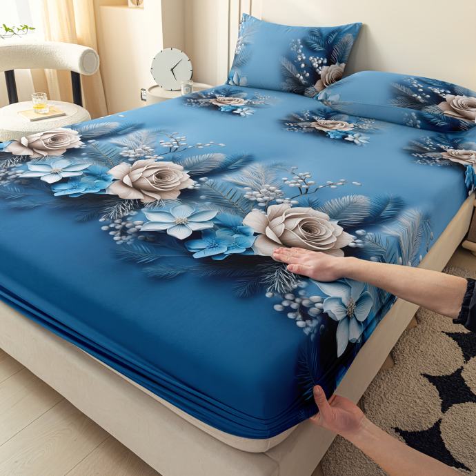 3D cvjetna posteljina s uzorkom ruže, plavi set posteljine - periva u perilici rublja i od mekane mikrovlakne, udobna posteljina za studente i odrasle, kućni dekor