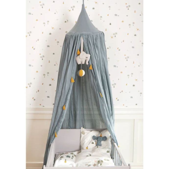 Unesite dašak čarolije u dječju sobu s predivnim baldahinom od 100% GOTS certificiranog organskog pamuka. Lagana tkanina stvara nježno, prozračno utočište koje pruža osjećaj sigurnosti i mira – savršeno za bebu ili malo dijete.