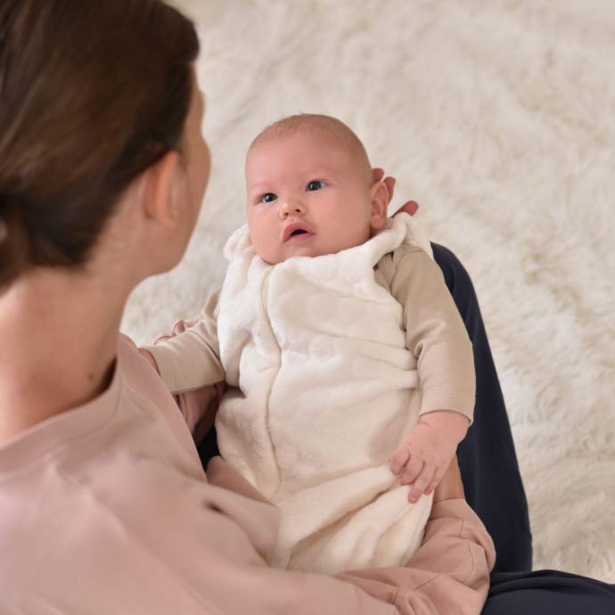 Zatvarač od vrata do nožnih prstiju olakšava oblačenje i skidanje kako bi presvlačenje bilo što ugodnije bebi. Dobro prozračan dizajn bez rukava, široki otvori na ramenima i vratu pomažu isparavanju i regulaciji tjelesne temperature.