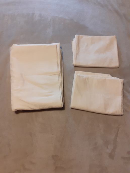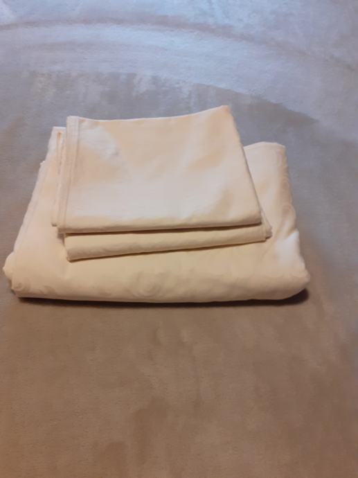 Kvalitetna starinska posteljina. Navlaka za poplun dimenzija 132*191 cm i dvije jastučnice dimenzija 89*71 cm. U super stanju. Imam još jedan komplet sa jednom jastučnicom, njegova cijena je 13 €, a cijena za obje navlake za poplun i tri jastučnice je 26 €. U Zagrebu i Karlovcu moguća je primopredaja. Pogledajte i ostale moje oglase, na više kupljenih stvari popust.