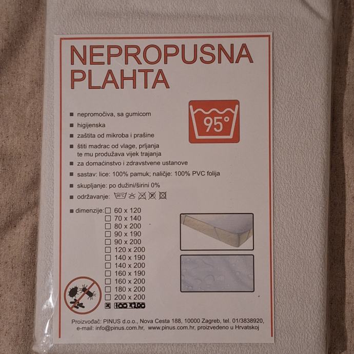 Nepropusna plahta 100X200 sa gumicom za krevet