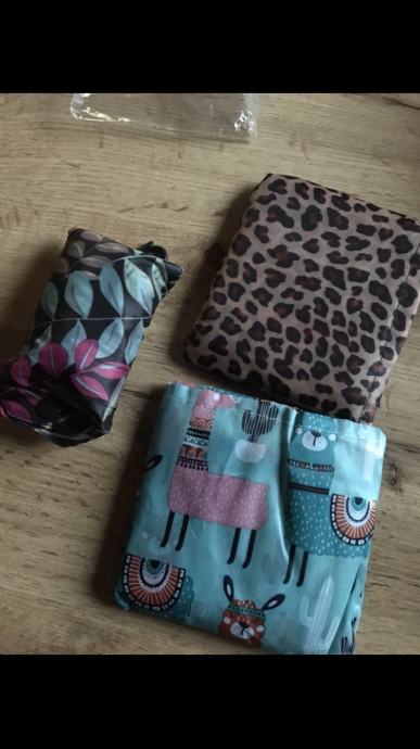 Torbe za kupnju od čvrstog poliestera / slažu se u paketić- kada nisu u funkciji / animal print, cvjetni ili lama sličice na torbi - svaka za 3.5 eu ili GRATIS 1 uz posteljinu